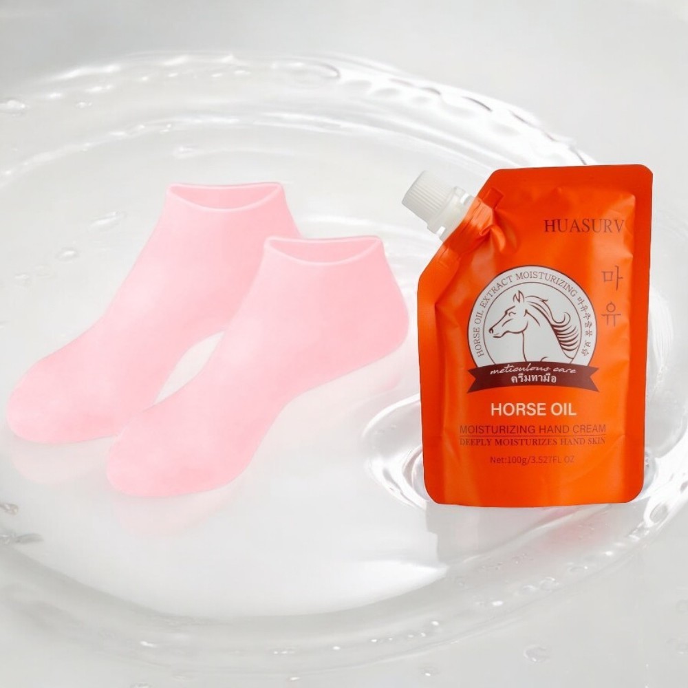 ถุงเท้าสปา ถุงมือสปา ให้ความชุ่มชื้น + น้ำมันม้าสกัด บำรุงมือ บำรุงเท้า ให้ความชุ่มชื้น (ฟรีไซส์ถึง38)
