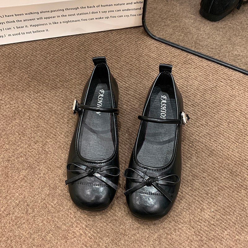 รองเท้าบัลเล่ต์หัวมนแบบมีโบว์ พื้นนิ่ม สำหรับผู้หญิง