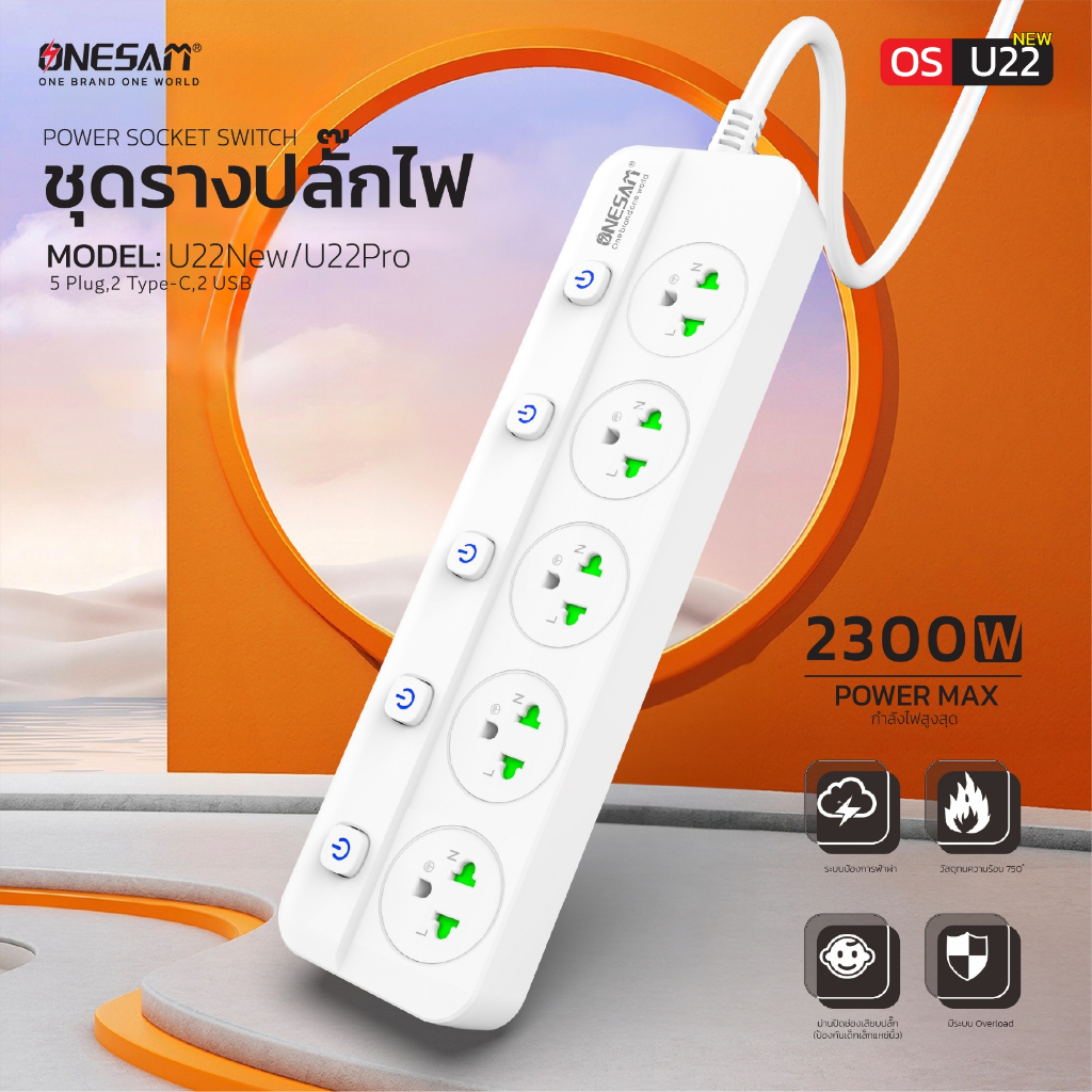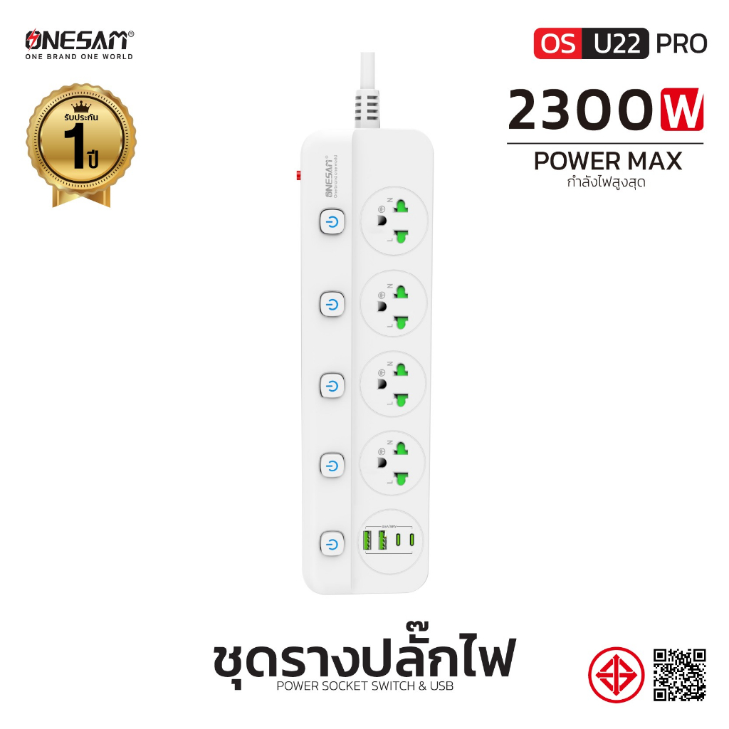 ปลั๊กไฟ ONESAM รุ่น OS-U22 NEW/PRO 2300W สายยาว 2,5 เมตร ของแท้ 100% รับประกัน 1 ปี