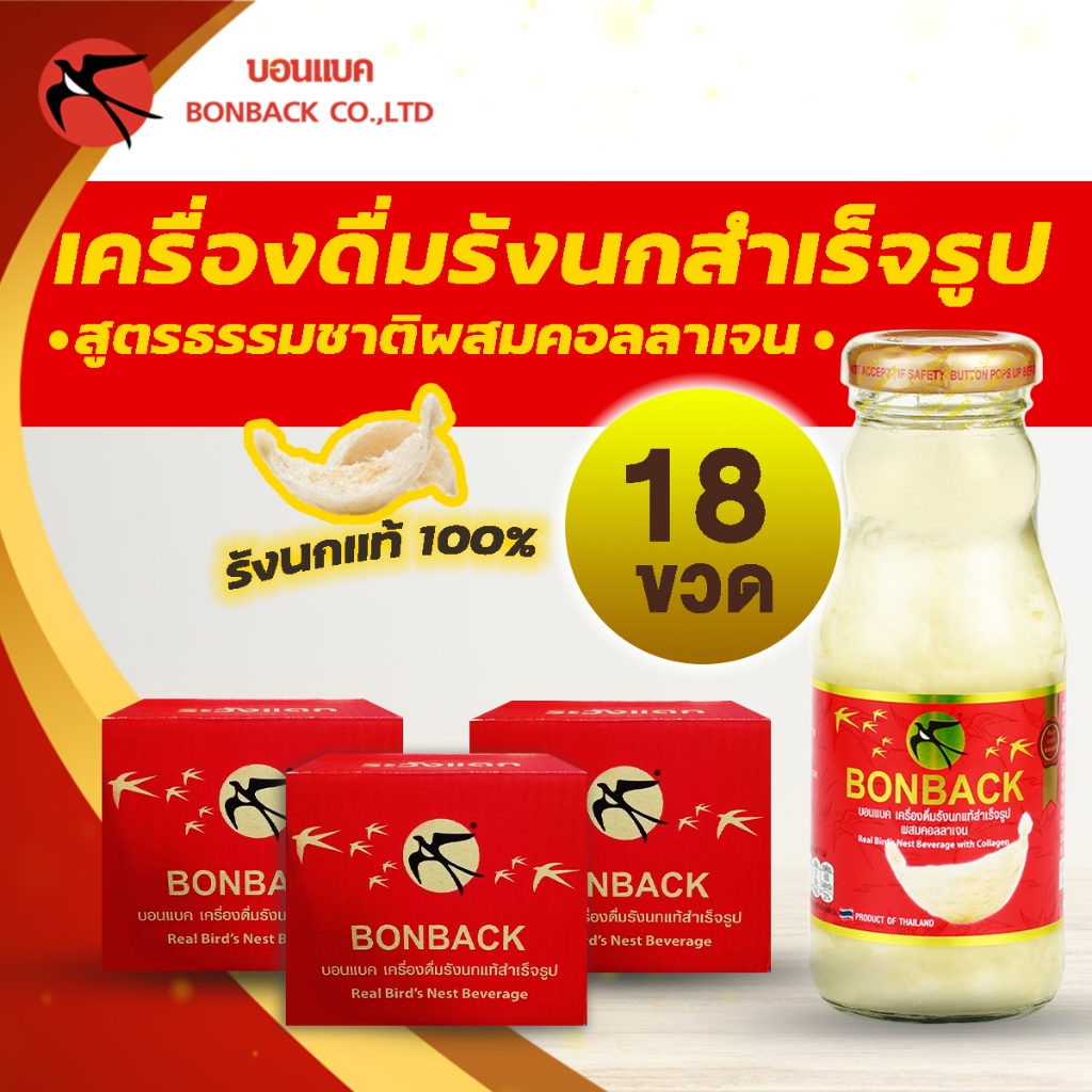 [18 ขวดใหญ่] จำกัด 2 set/ออเดอร์ BONBACK บอนแบค เครื่องดื่มรังนกแท้ สูตรธรรมชาติ ผสมคอลลาเจน 200ml.