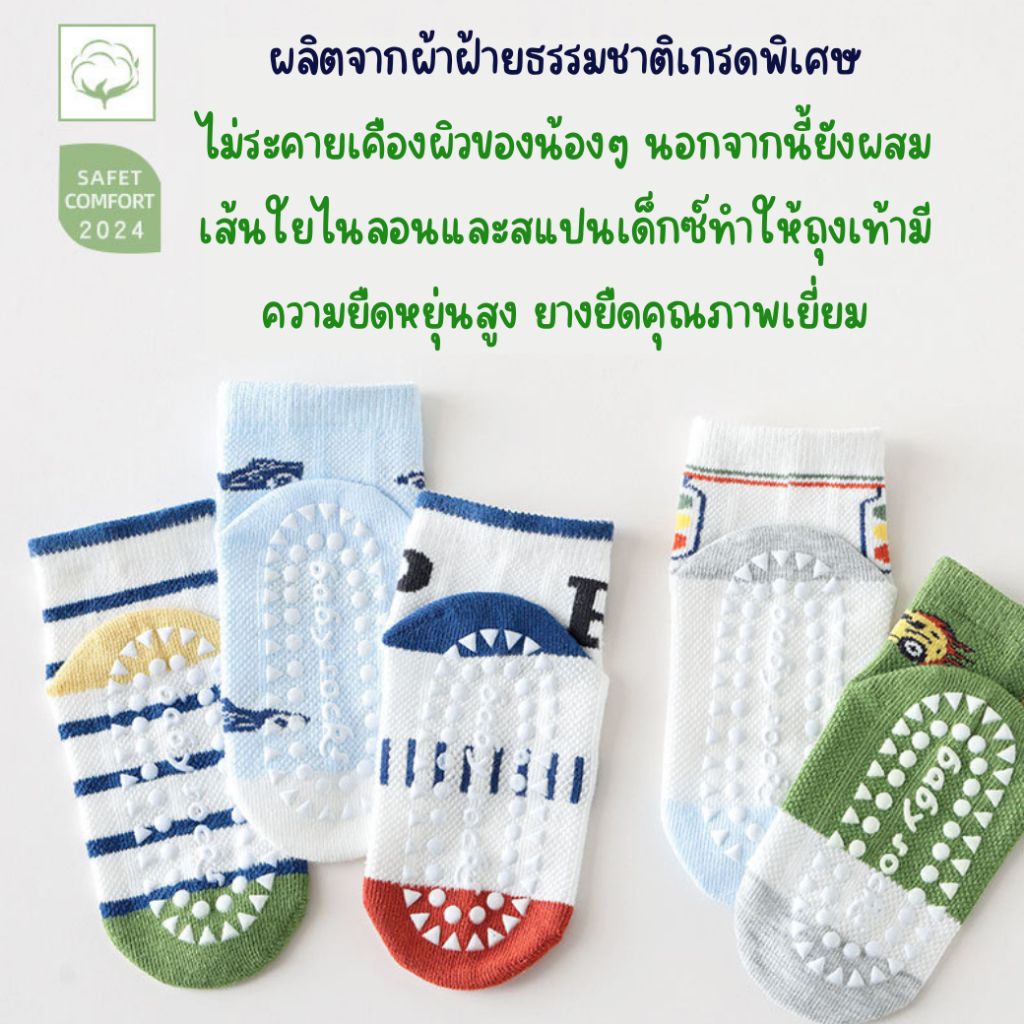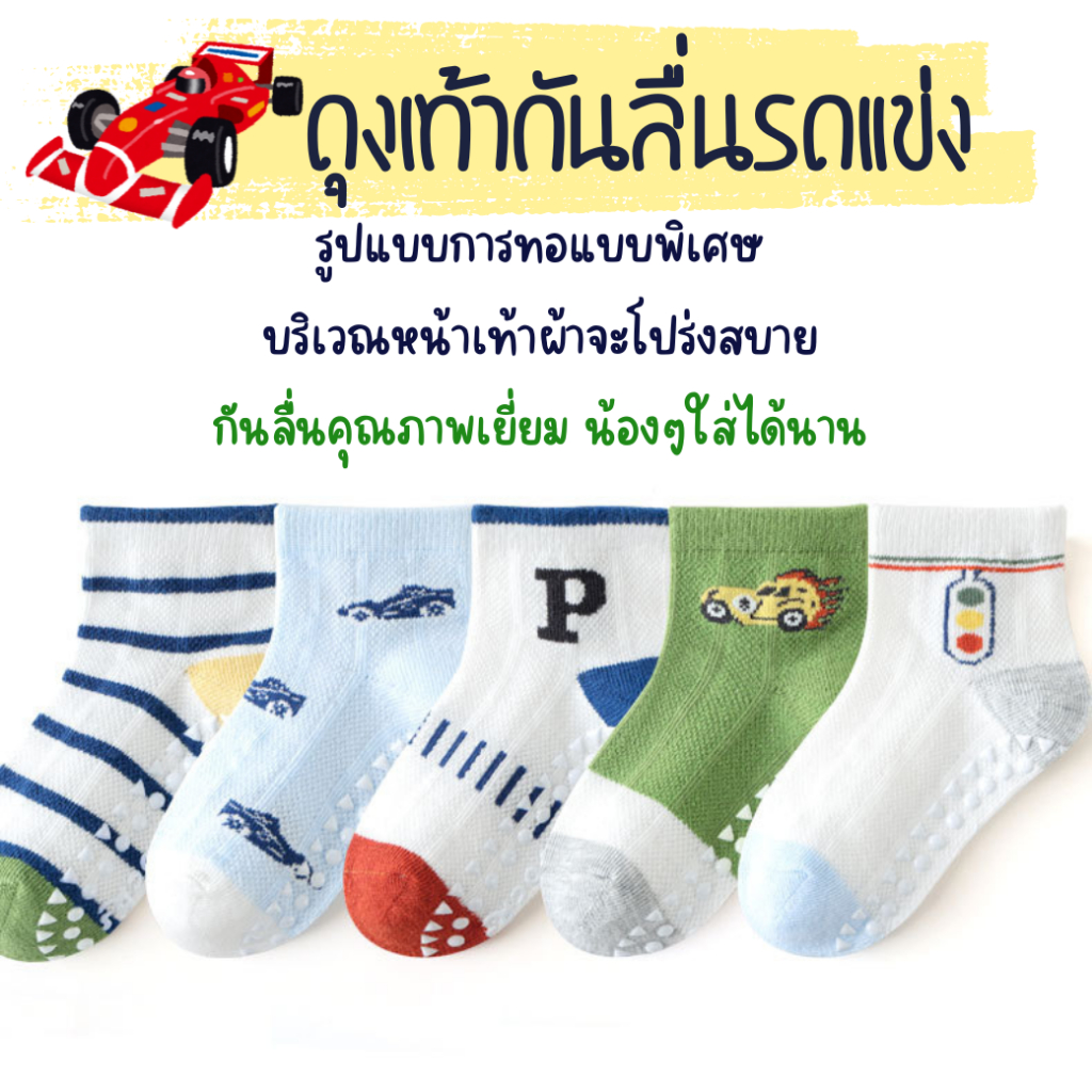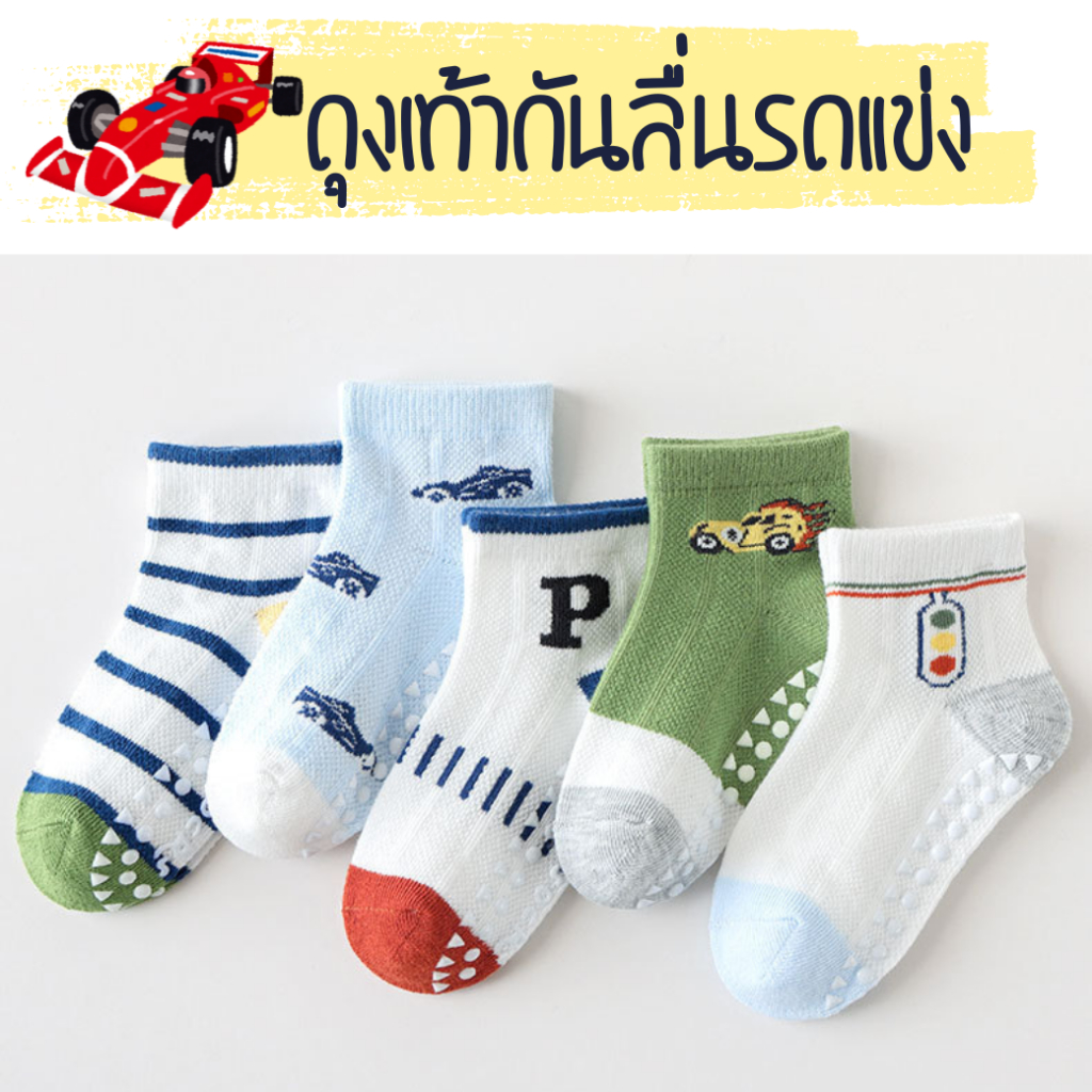 Bambilis : ⚡พร้อมส่ง⚡ ถุงเท้าเด็ก ถุงเท้าเด็กกันลื่นข้อสั้น 1 แพคมี 5 คู่ ลายรถแข่ง