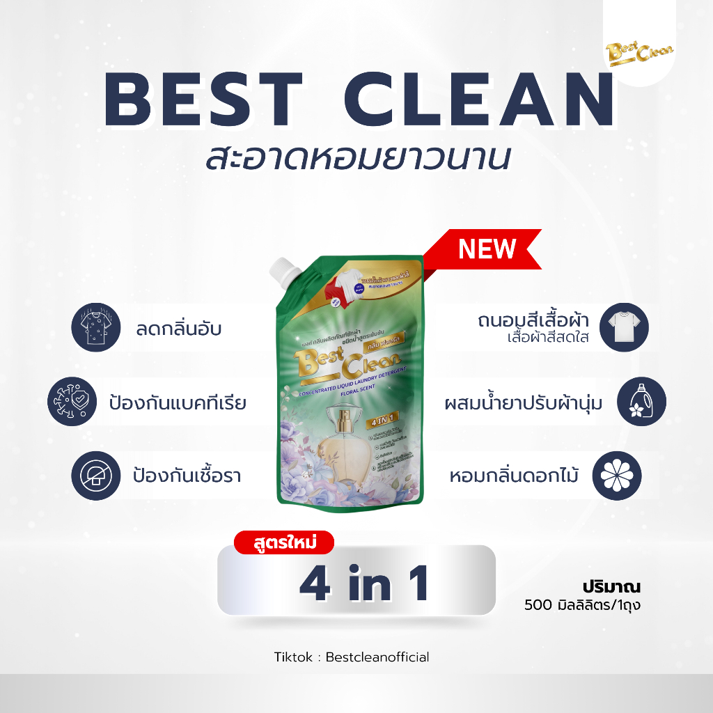 โปร16ถุงBESTCLEANกลิ่นฟลอรัลจ่ายเพียงราคา210บาทน้ำยาซักผ้าเเละปรับผ้านุ่มในตัวหอมยาวนาน