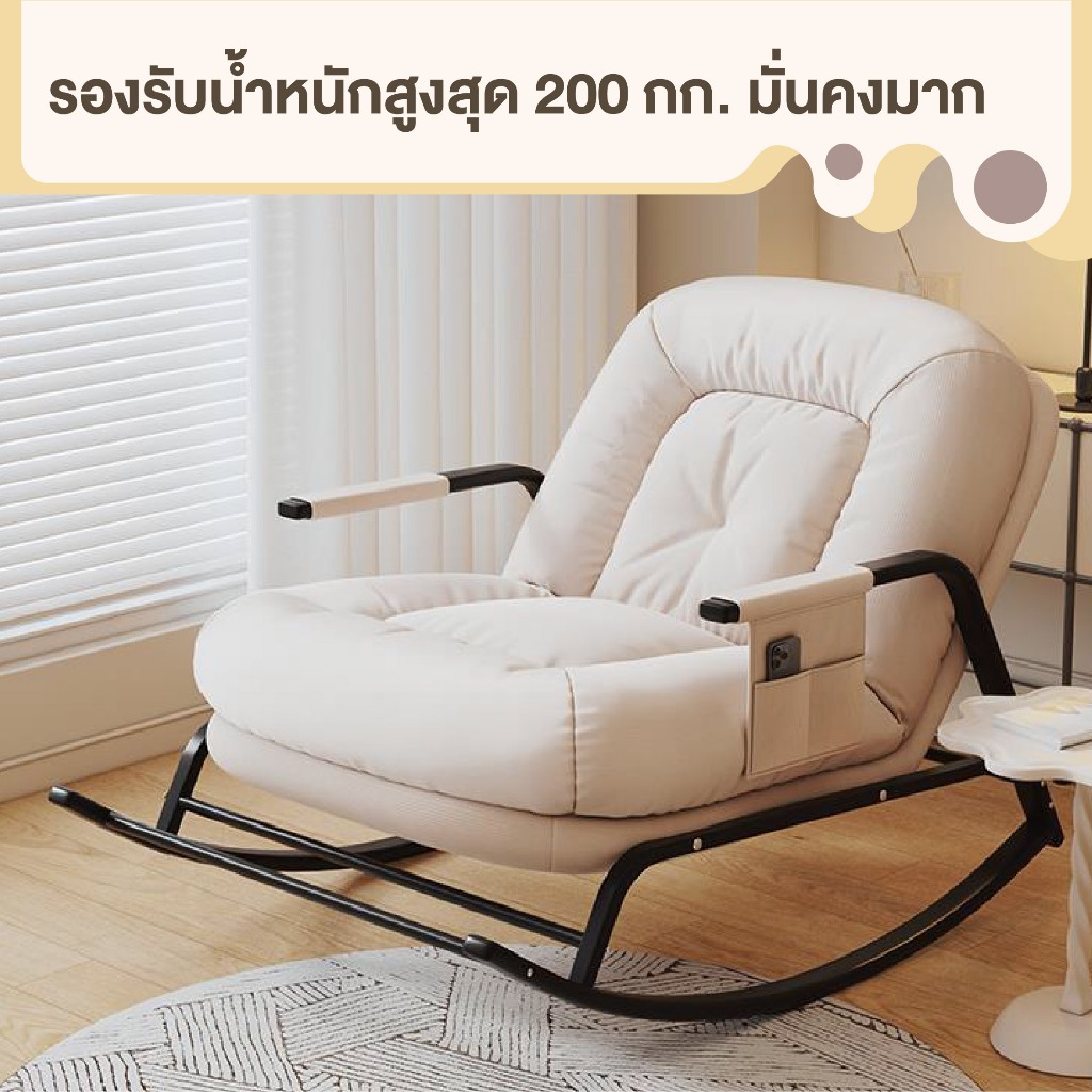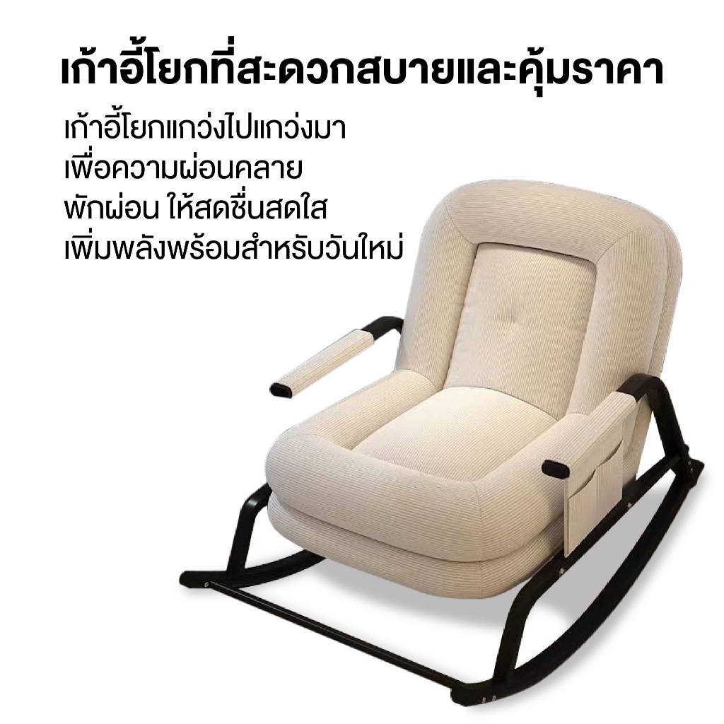 Homemark เก้าอี้พักผ่อน โซฟาปรับนอนได้ ถึง160°c สีครีม Minimal เบาะฟองน้ำหนา10ซม. นุ่มสบาย ผ้ากำมะหยี่ เก้าอี้โย