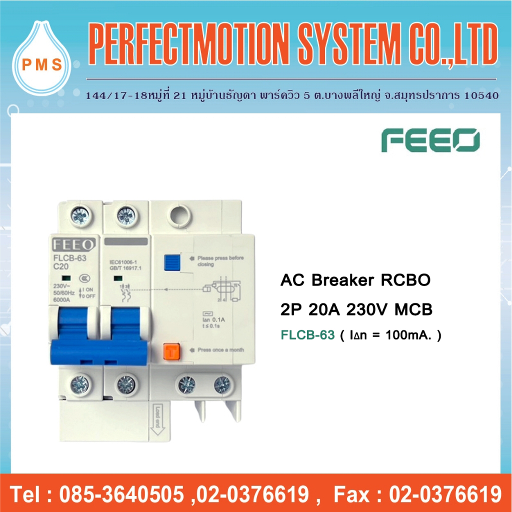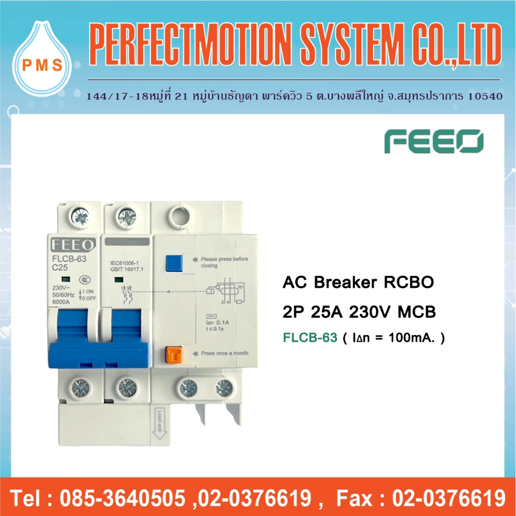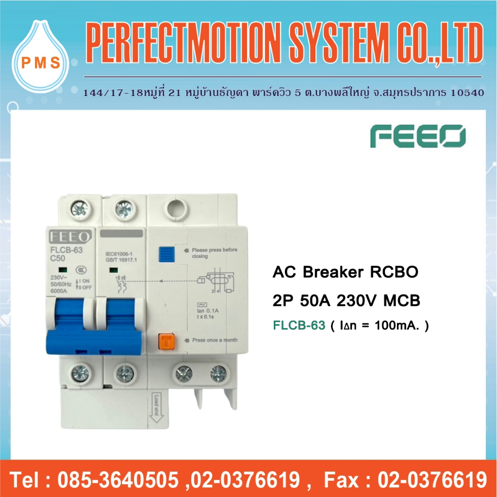 AC Breaker RCBO 2P 230V ( FLCB-63 ) เบรกเกอร์กันดูด 100mA. สินค้าส่งจากไทย