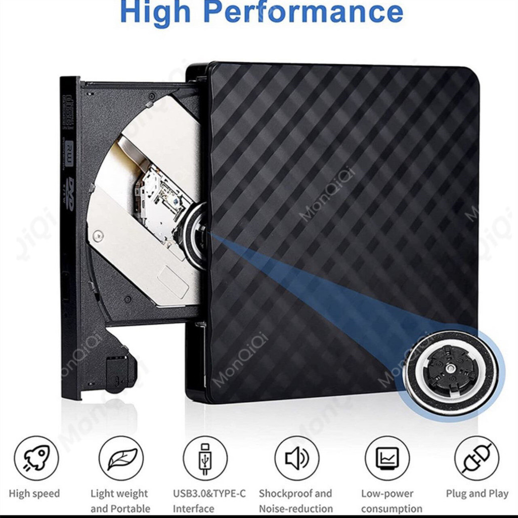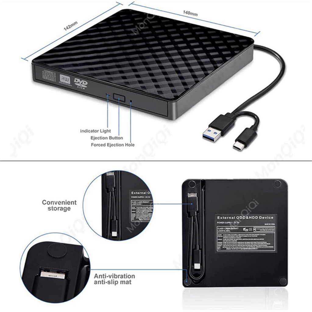 monqiqi USB 3.0 Ultra Slim External DVD-RW Burner/CD/Rewrite/ออปติคัลไดรฟ์แบบพกพาสีดำและสีขาว