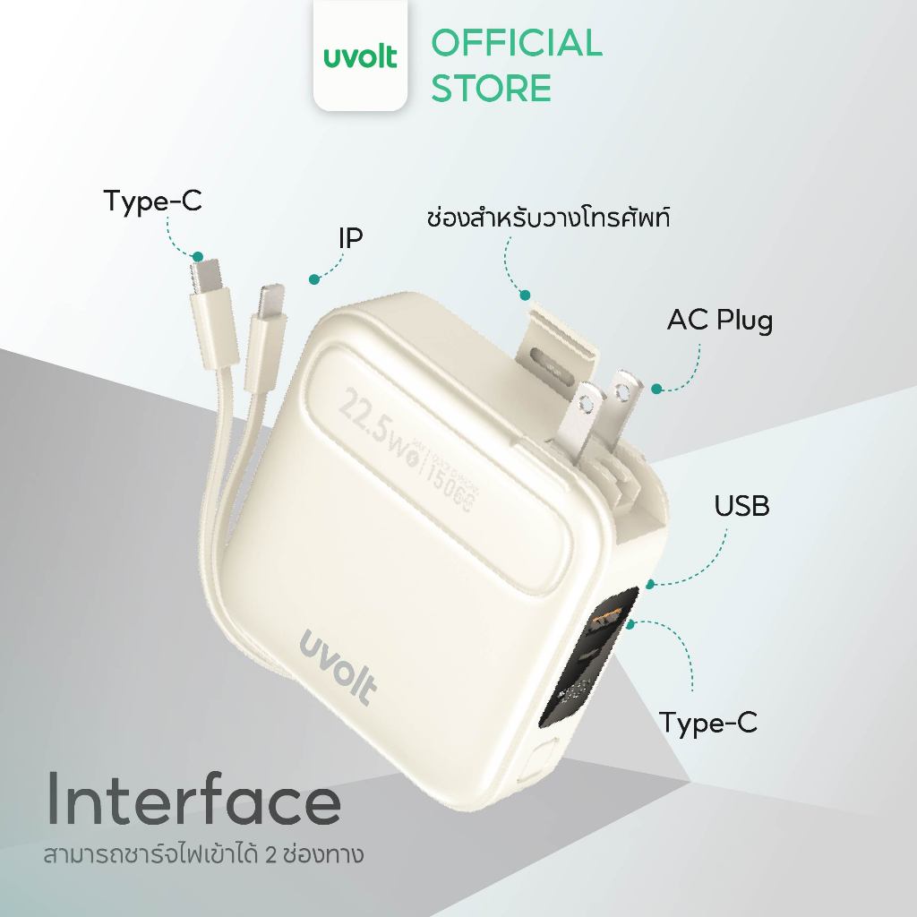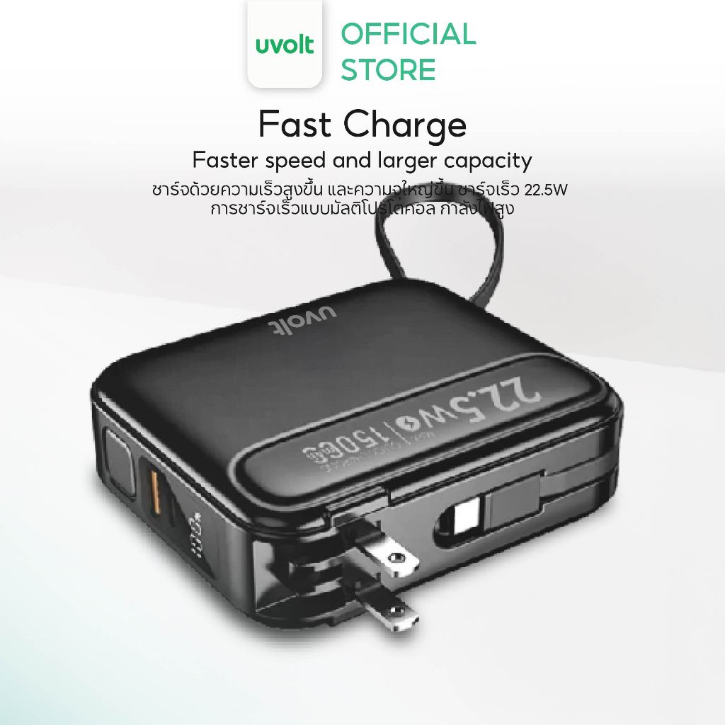 [รับประกัน 2 ปี] Uvolt UVP15AC-01 พาวเวอร์แบงค์ชาร์จเร็ว สายในตัว 15000mAh Fast Charge PD20W Powerbank 4in1 จอLED