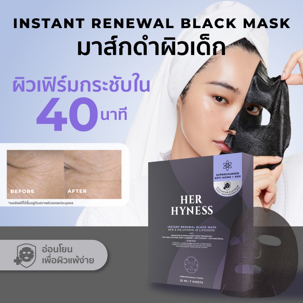 HER HYNESS INSTANT RENEWAL BLACK MASK BOX (7 SHEETS) มาส์กดำผิวเด็ก ฟื้นฟูผิว