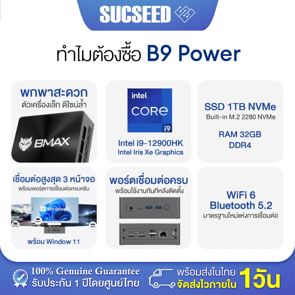 BMAX B9 Power Mini PC มินิ พีซี Windows11 CPU GEN12 Intel Core i9-12900HK Iris Xe Graphic RAM 32GB