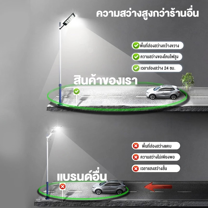 ONECUTE ไฟถนนโซล่าเซลล์ 50000W ไฟถนนรีโมทคอนโทรล ไฟถนน โคมไฟติดผนัง Solar Light ไฟสปอตไลท์ ไฟโซล่าเซลล์ กันฝนกันฟ้าผ่า