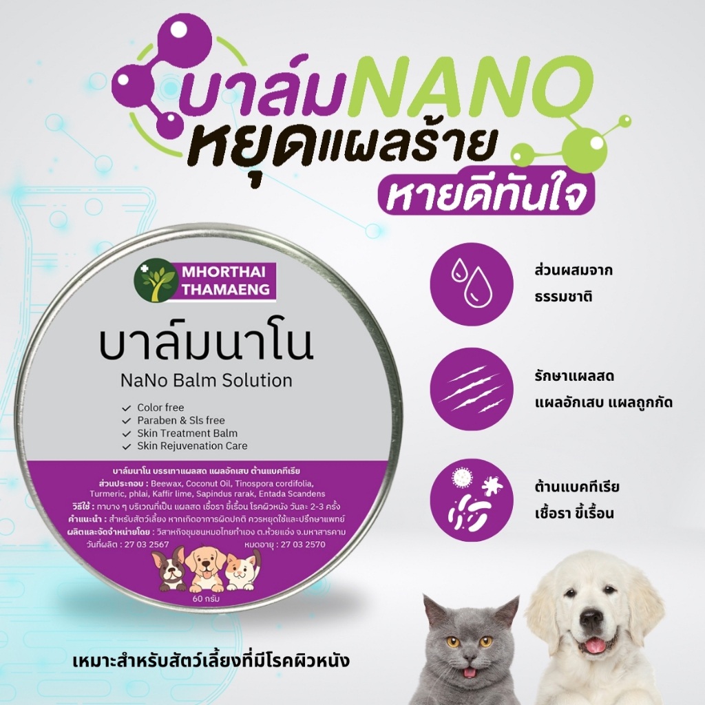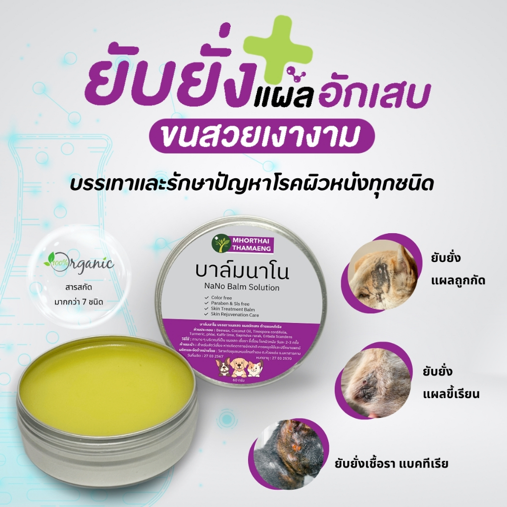 บาล์มนาโน แผลแห้งไว Nano Balm ครีมบาล์มทาแผล สัตว์เลี้ยงทุกชนิด แผลสด แผลอักเสบ ฆ่าเชื้อแบคทีเรีย 60 g. หมอไทยทำเอง