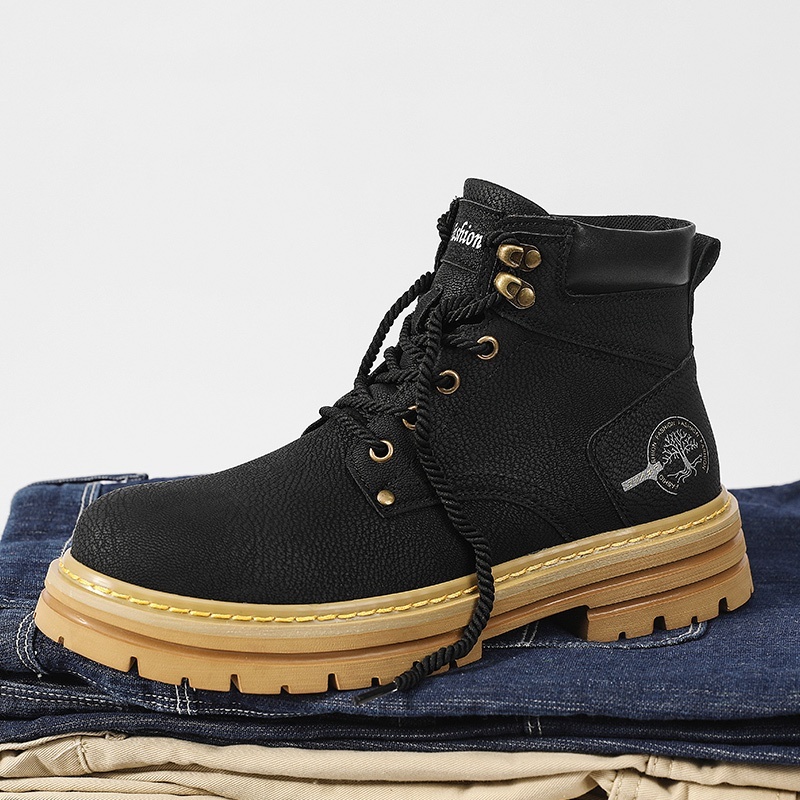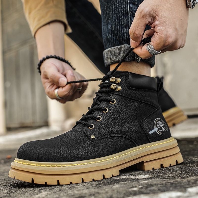Intelscore รองเท้าบู๊ทมาร์ตินหุ้มข้อสำหรับผู้ชาย รองเท้าบู๊ททำงานลำลองพื้นหนาทันสมัย รองเท้าบู๊ตมอเตอร์ไซค์ 39-44!!