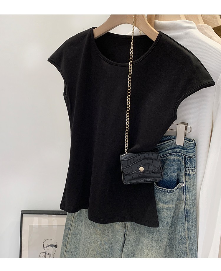 85226 เสื้อยืดแขนสั้นสีทึบคอกลมทรงเข้ารูป