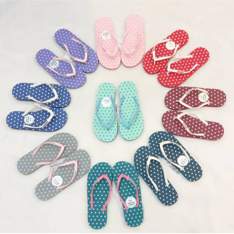 รองเท้าแตะลายจุด Hippo Bloo สีเทาตัดชมพู โทนสีสดใส 12 สี รองเท้าอยู่บ้าน sandals ฮิปโป บลู
