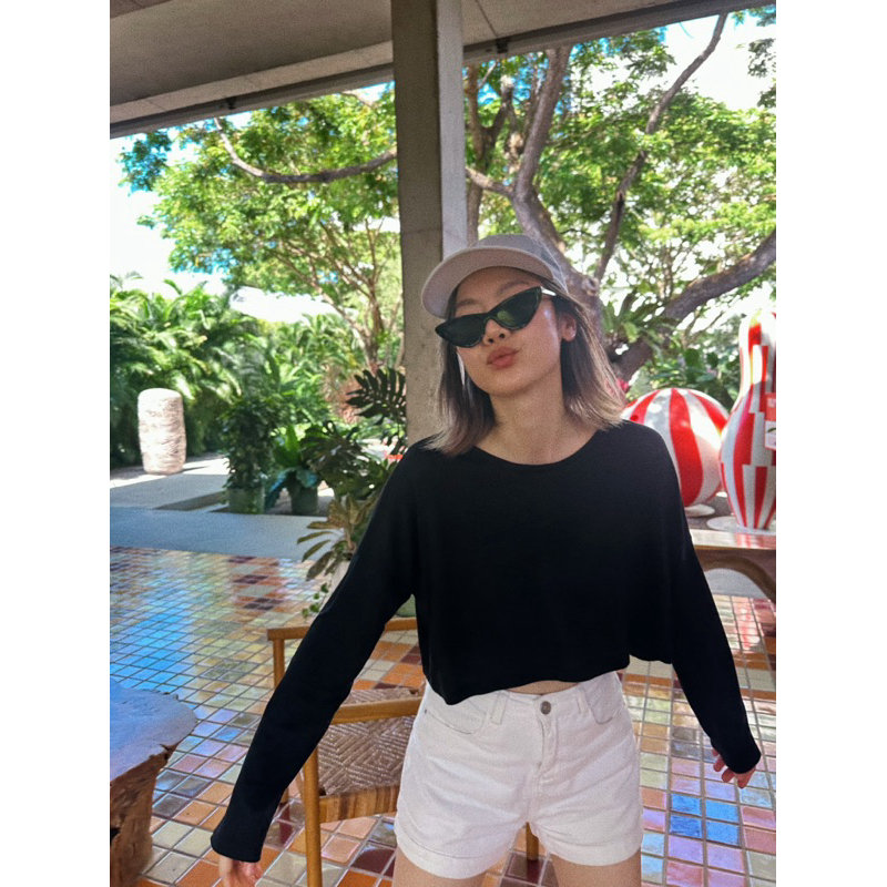 Pastelsmotel - Smoky basic. เสื้อครอปทรงกว้าง แขนยาว ใส่สบาย ผ้ายืดนุ่มนิ่ม