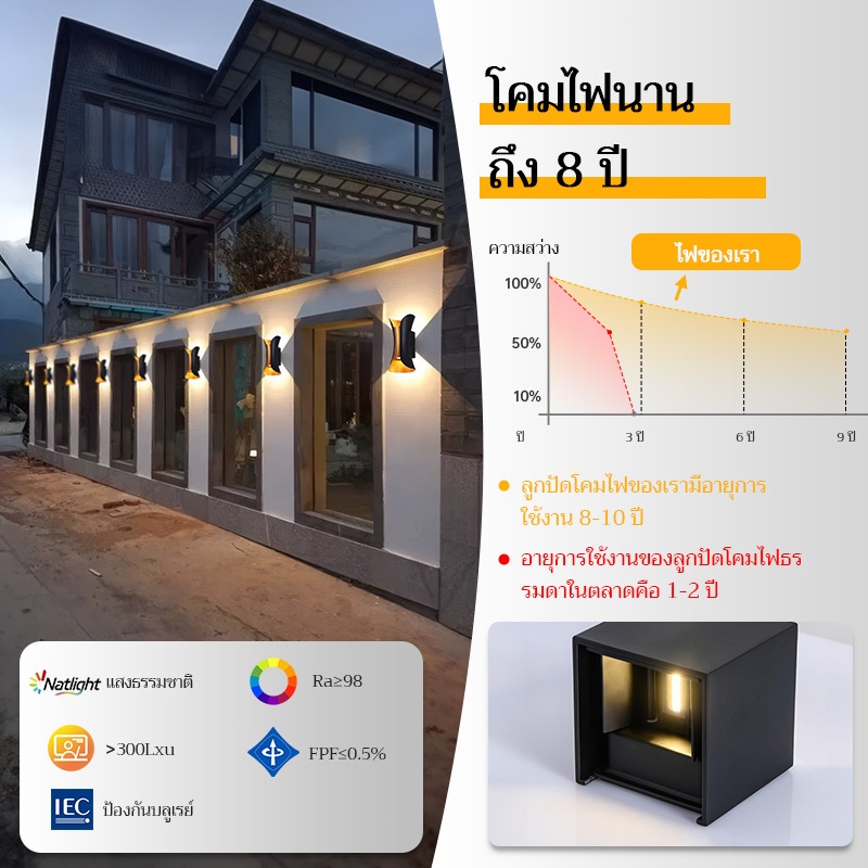 【รับประกัน 10 ปี】GEJIESE ไฟติดผนัง led IP65 กันน้ำ ไฟภายนอก แสงอบอุ่น โคมไฟติดผนัง ติดตั้งง่าย wall lamp