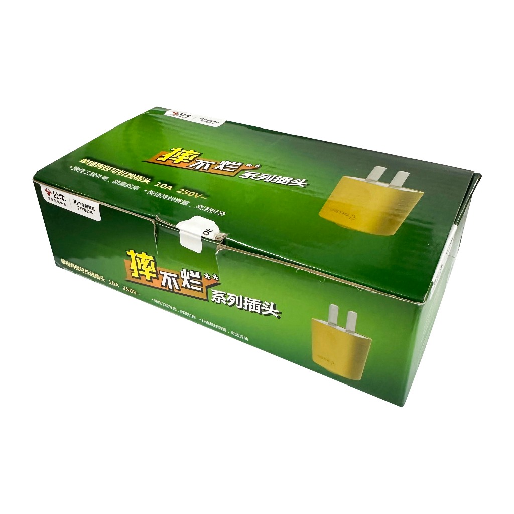 (ขายยกกล่อง 20 ชิ้น) GONGNIU ปลั๊กตัวผู้ยาง 2 ขา 10A 250V รุ่น GNT-10L4S ตกไม่แตก (รุ่นใหม่)