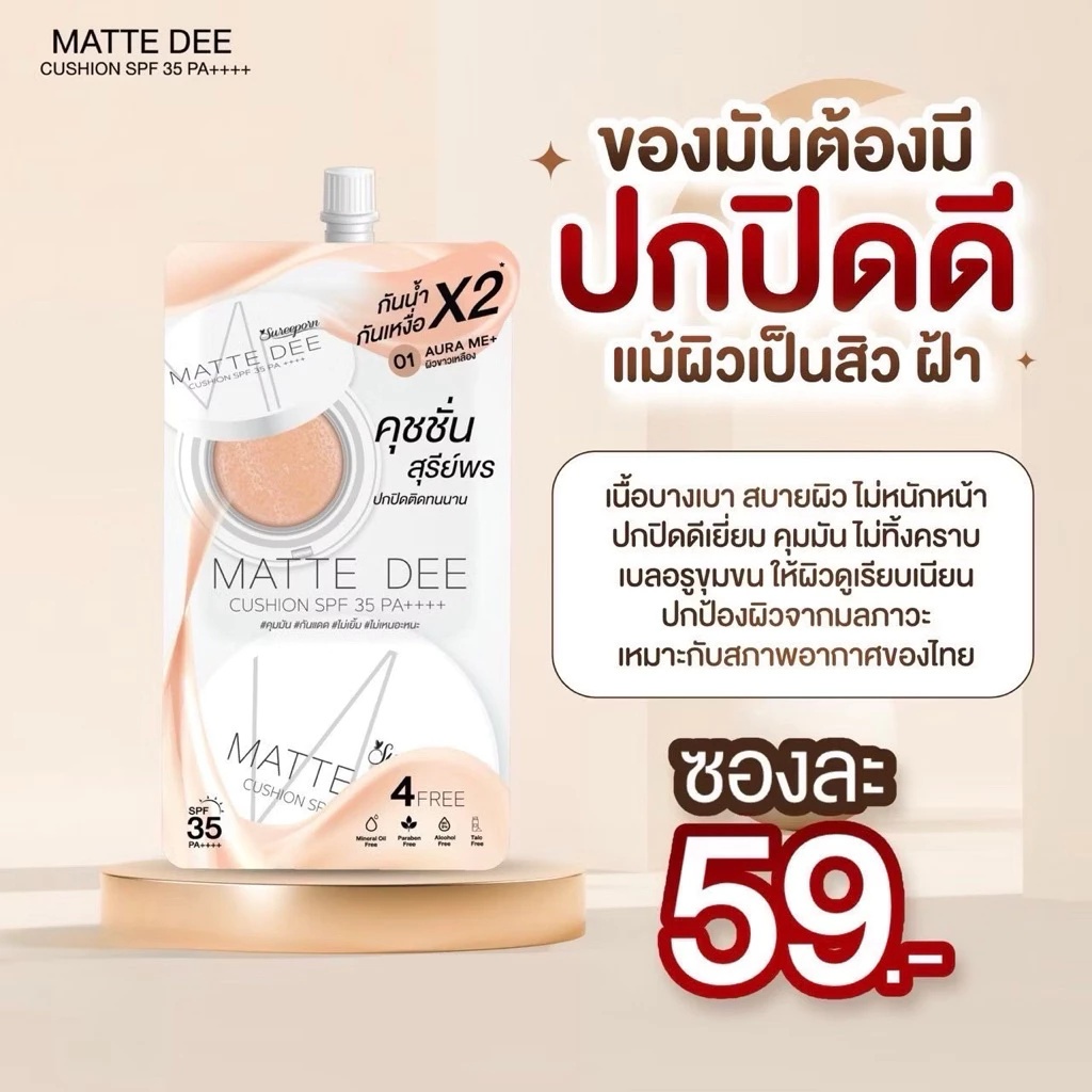 ( 1 ซอง ) Sureeporn Matte Dee Cushion สุรีย์พร แมท ดี คุชชั่น SPF35 PA++++ มีให้เลือก 2 เฉดสี (4 g.)