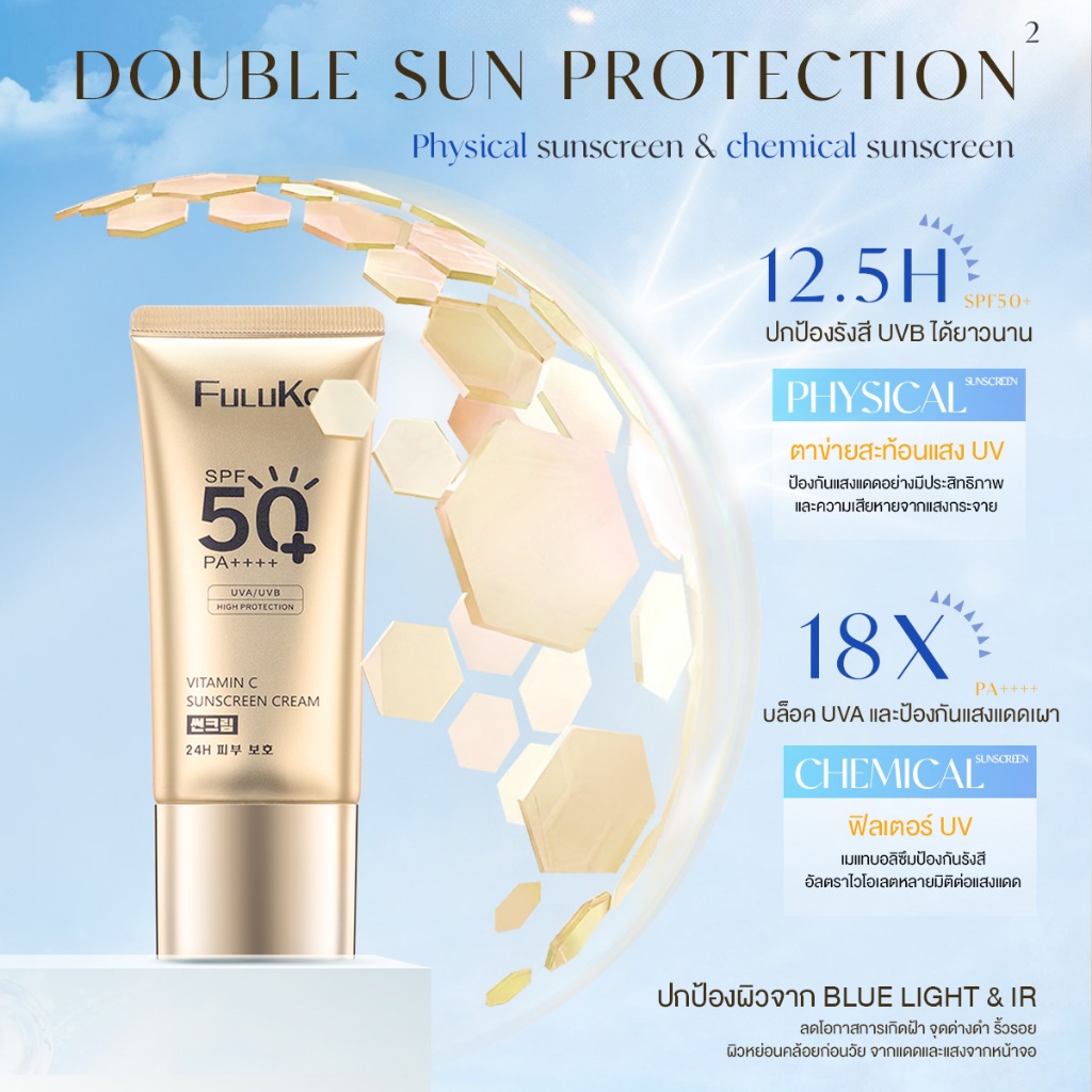 【New product discounts】FULUKO VC Sunscreen 50g SPF50+ PA++++ เนื้อกันแดดบางเบาอ่อนโยนต่อผิว