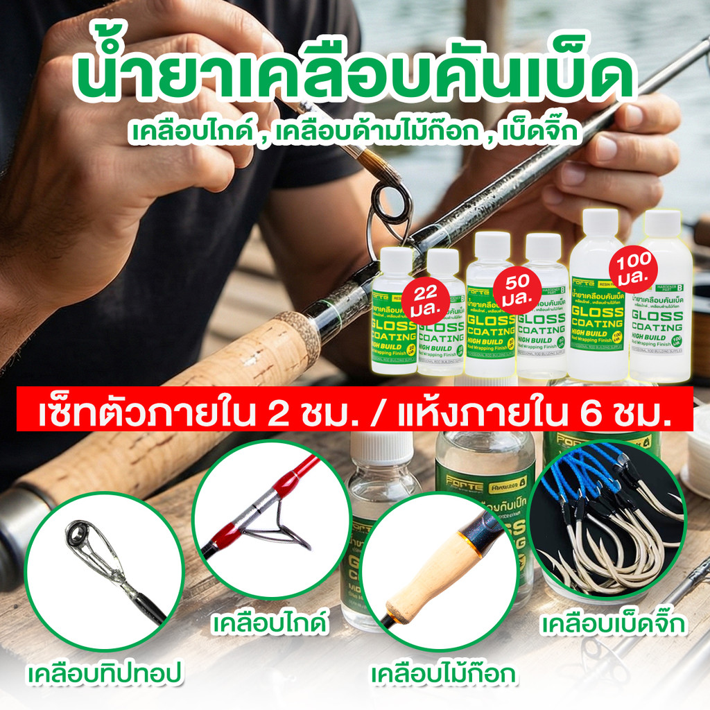 น้ำยาเคลือบคันเบ็ด UV Gloss Coating Forte น้ำยาเคลือบไกด์ น้ำยาเคลือบด้ามก็อก เคลือบเบ็ดจิ๊ก