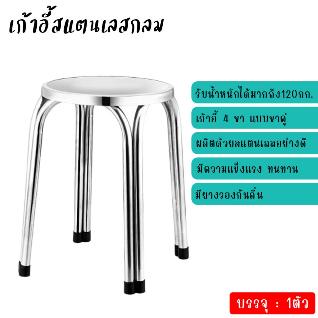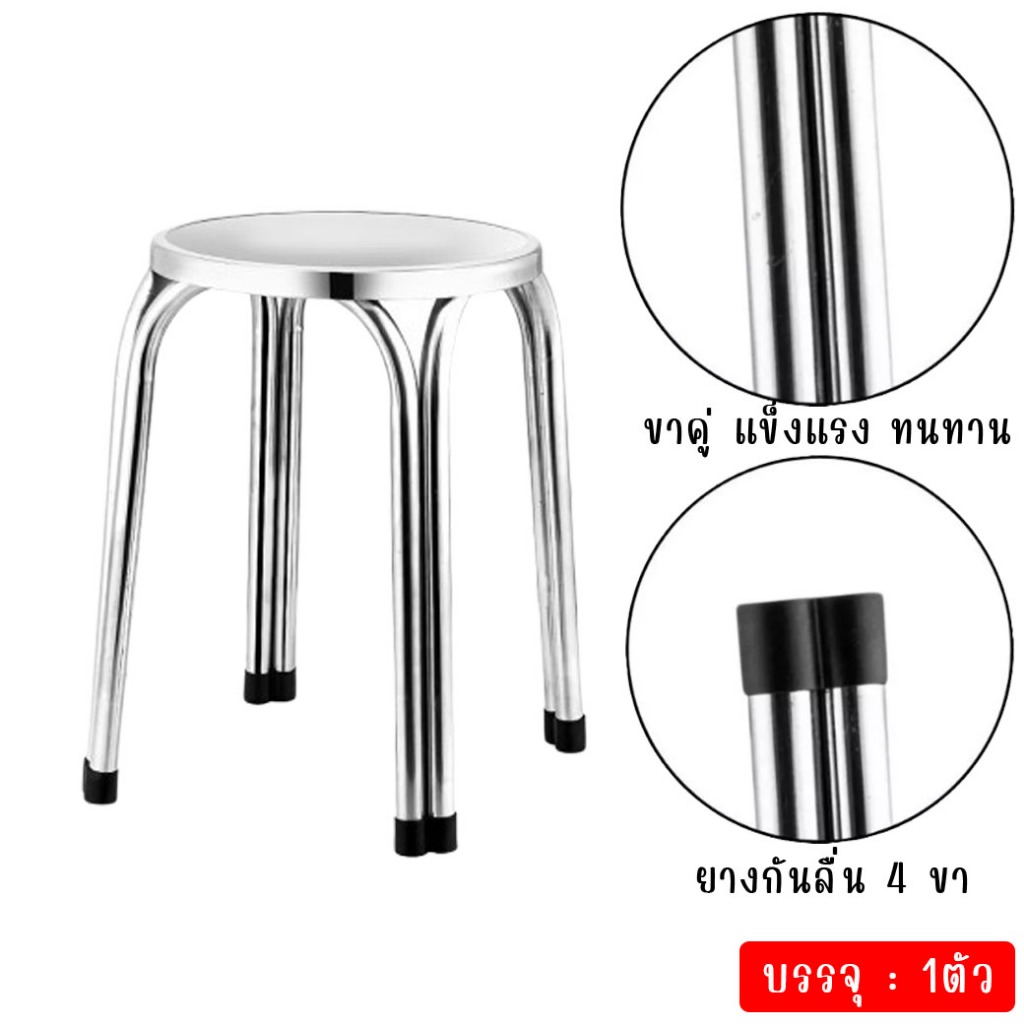 เก้าอี้สแตนเลสทรงสูง ทรงเตี้ย เก้าอี้กลม เก้าอี้4ขาคู่ มียางรองกันลื่น (1ตัว) เก้าอี้กินข้าว เก้าอี้ร้านก๋วยเตี๋ยว