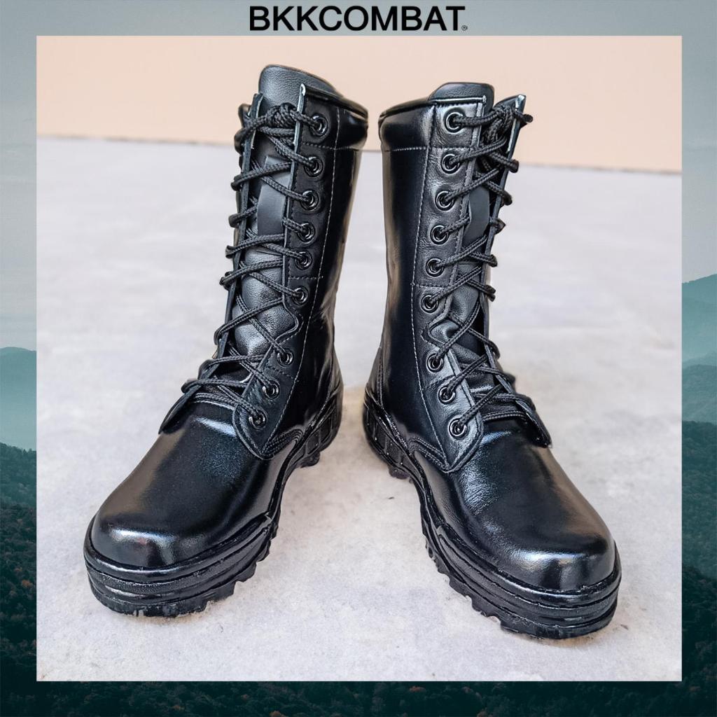 คอมแบท รหัส 618 (ไม่มีซิป) หัวเรียบ สูง10นิ้ว หนังวัวแท้ หนังนิ่มขัดเงา