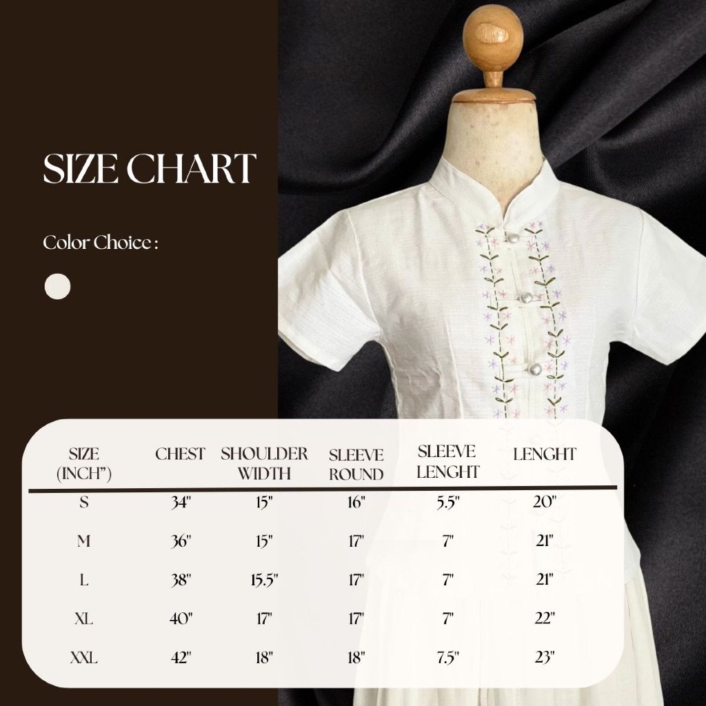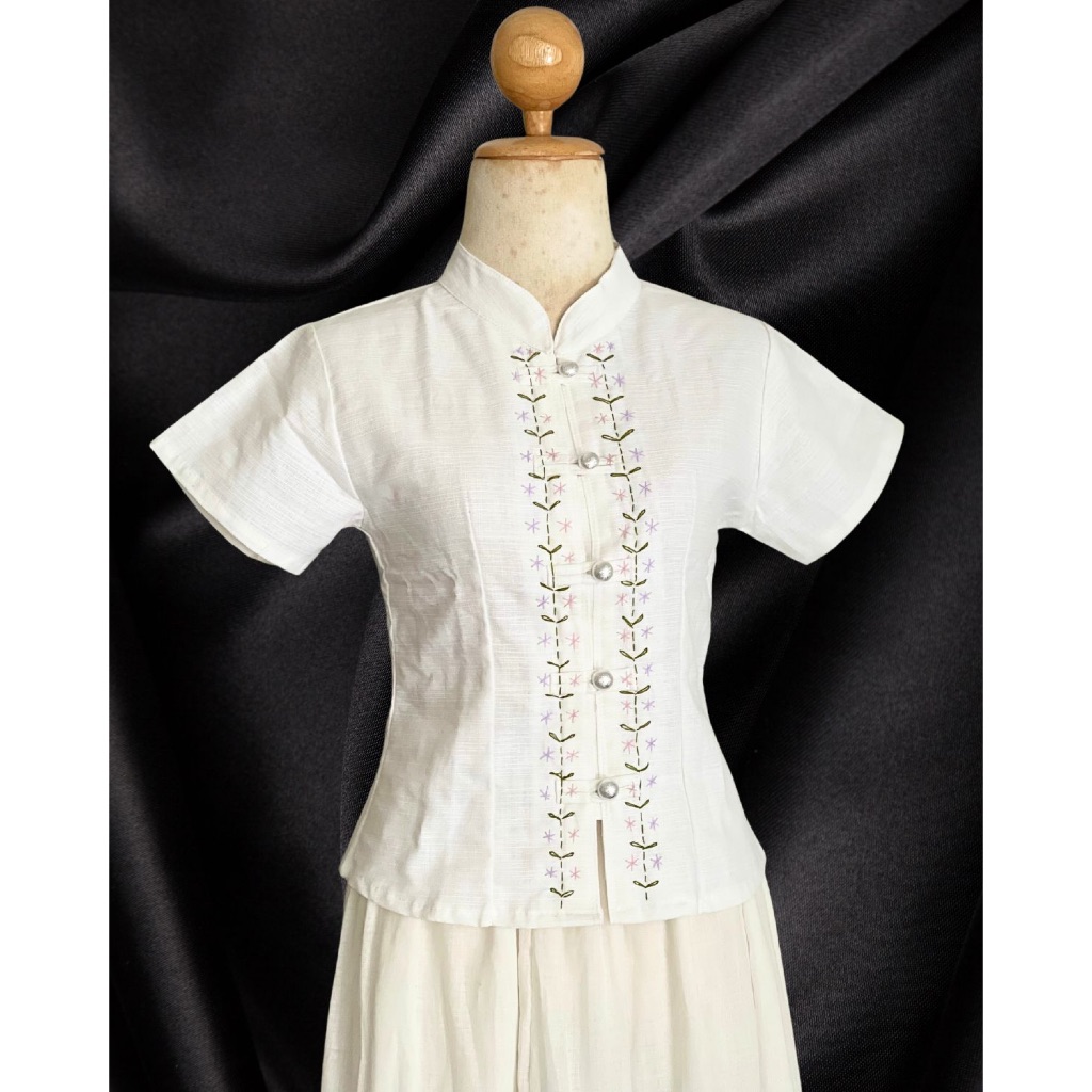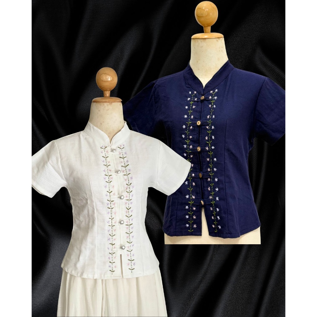 เสื้อผ้าฝ้าย เสื้อพื้นเมือง ผ่าหน้าเถาวัลย์ (ขาว-กรม)