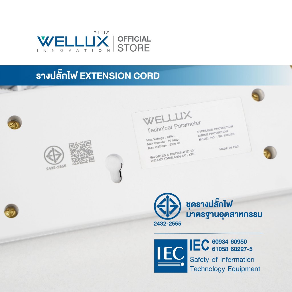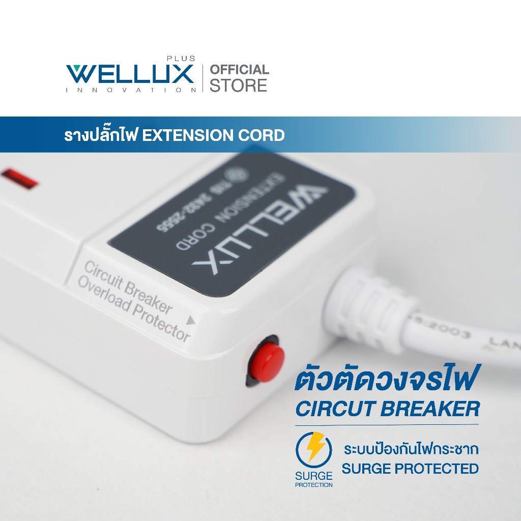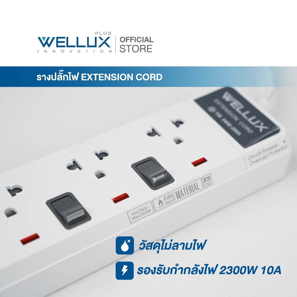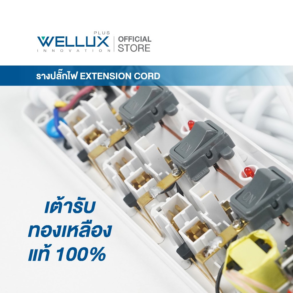 [แถมพัดลม]WELLUX ปลั๊กพ่วงมาตรฐาน 5 ช่อง 5 สวิตช์ สายยาว 5 เมตร รองรับกำลังไฟ 2300W มอก.2433-2555