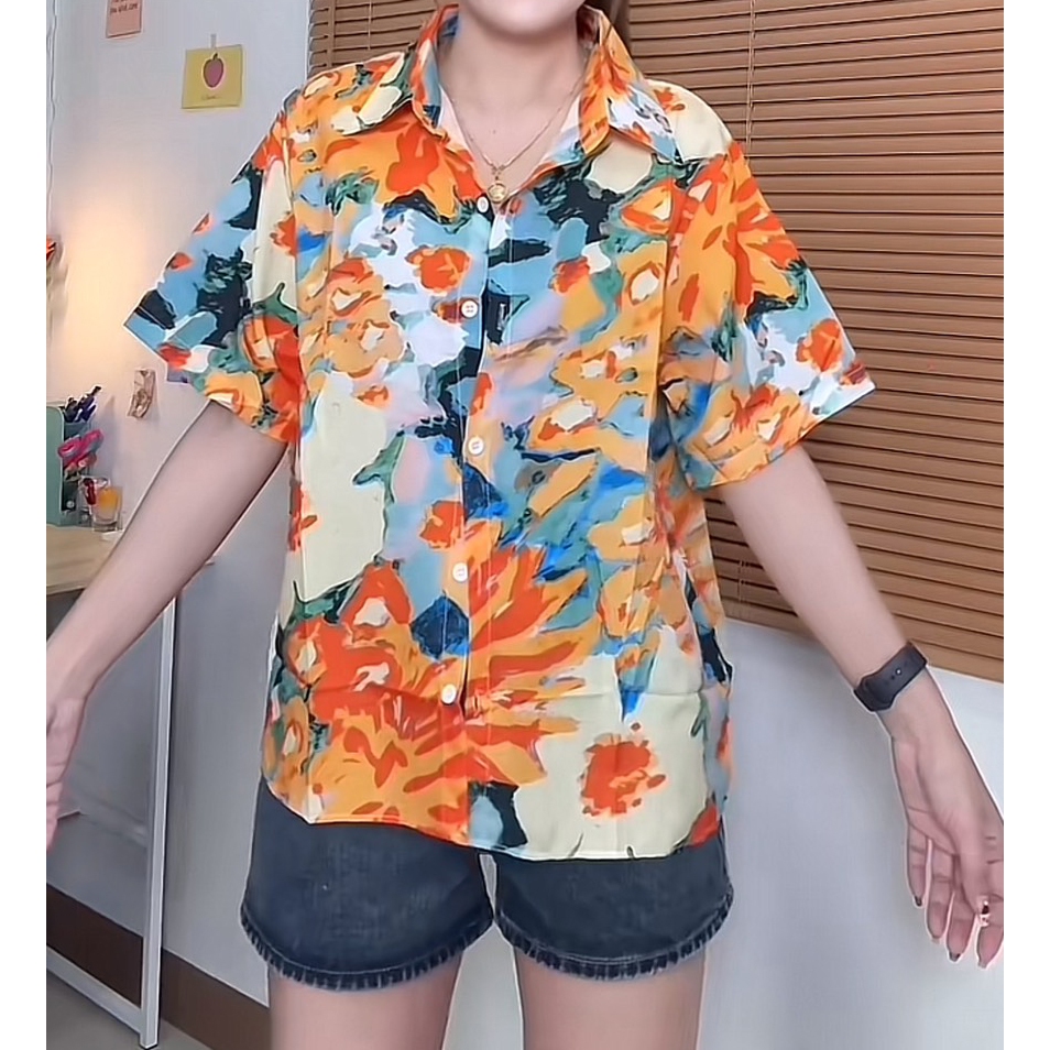 เสื้อเชิ้ต ฮาวาย ลายดอกไม้มีหลากหลายสีให้เลือก แขนสั้น ชาย หญิง สไตล์เกาหลี เสื้อฮาวาย ผ้านิ่ม ใส่สบาย✨🌷💦