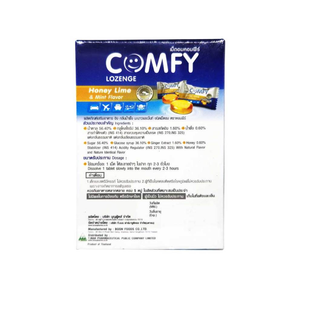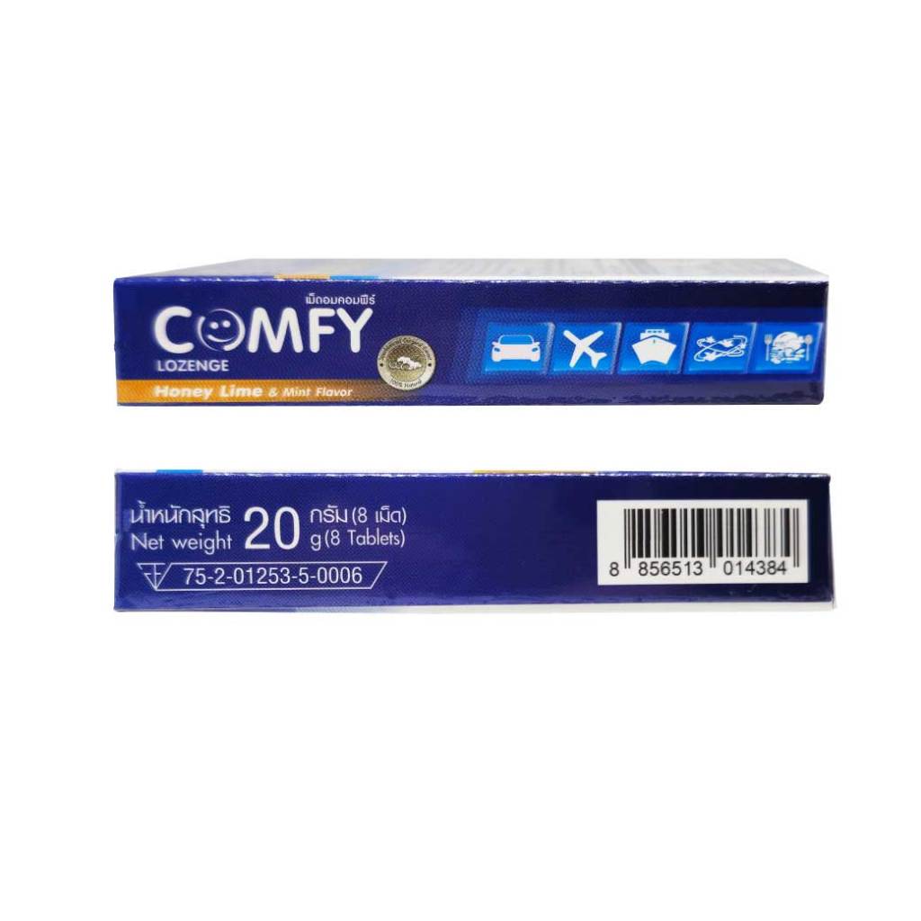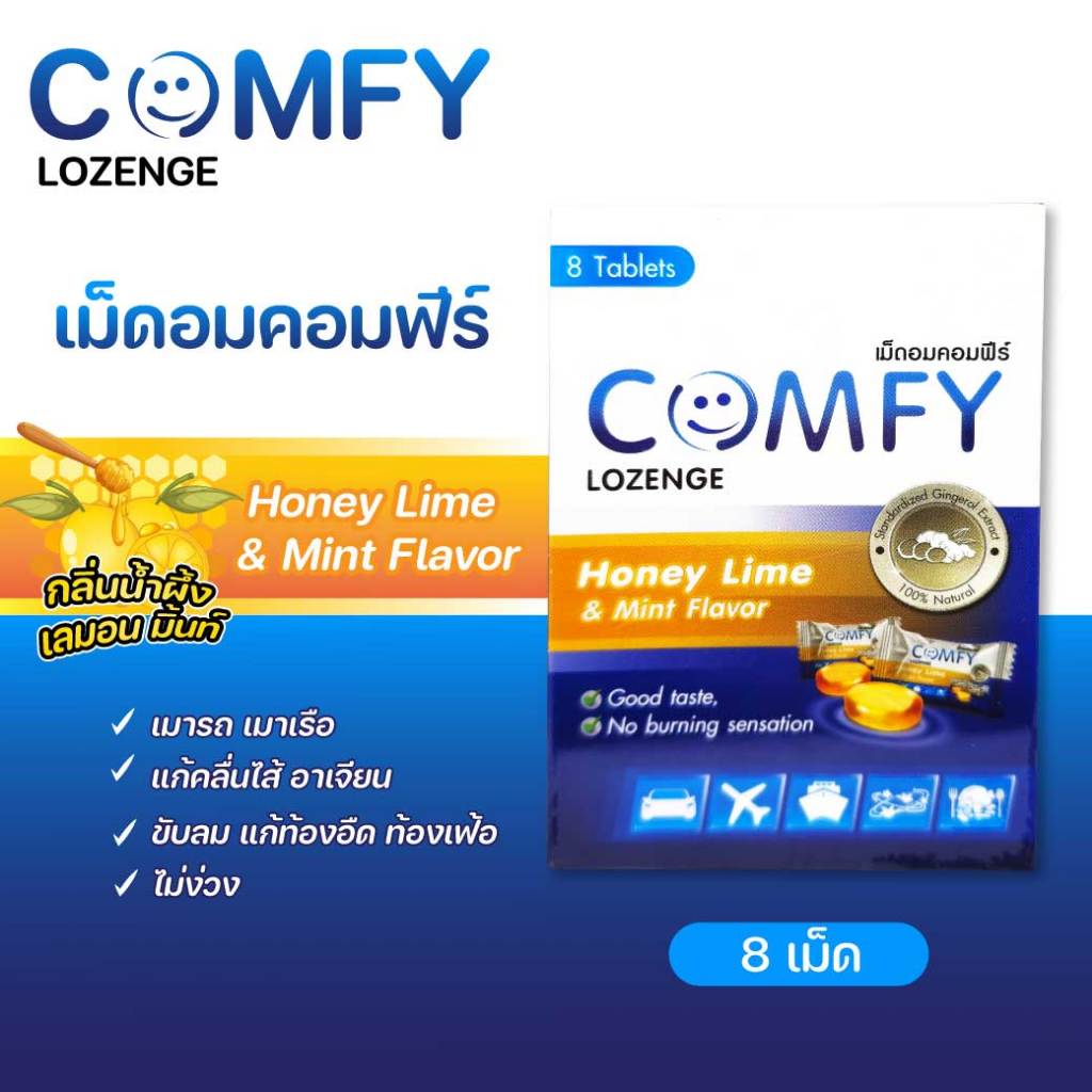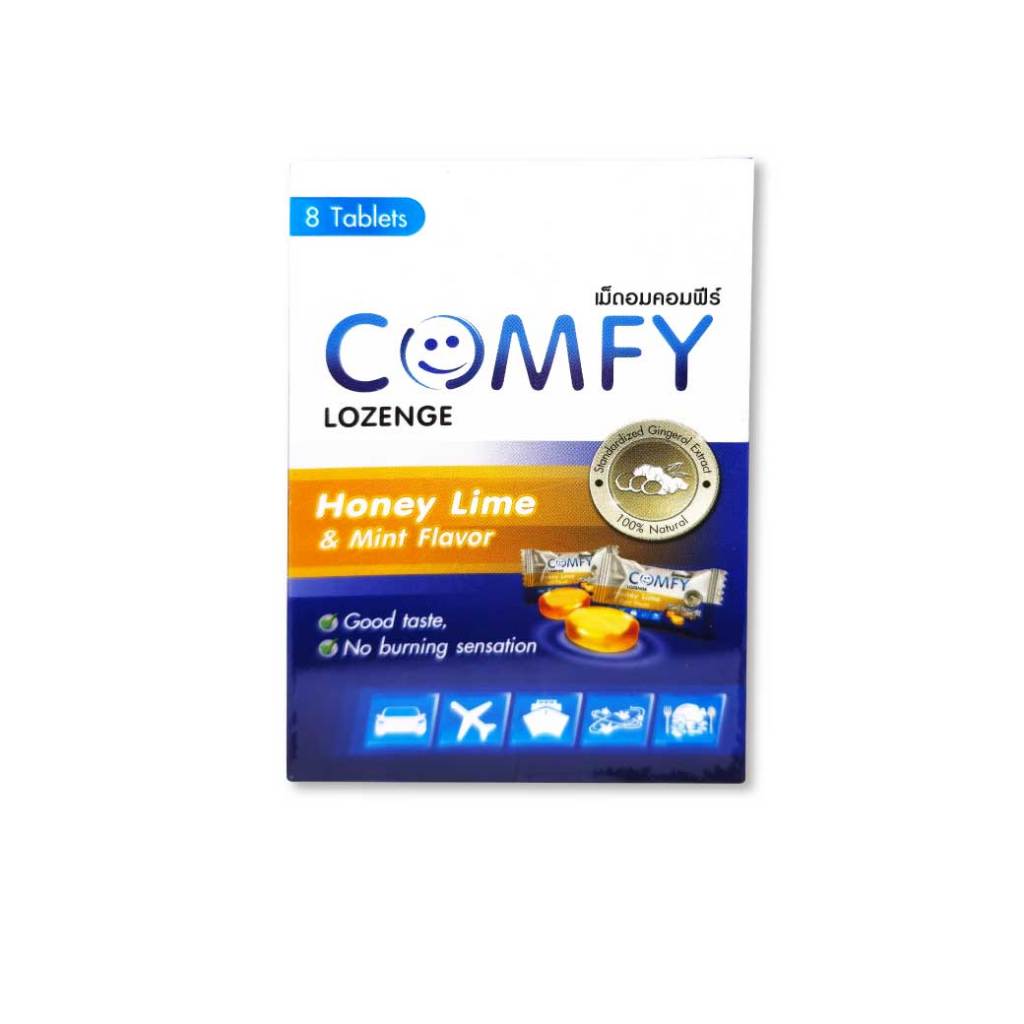 COMFY Lozenge 8เม็ด. Honey Lime & Mint Flavor คอมฟีร์ ขิง กลิ่นน้ำผึ้ง มะนาวและมิ้นท์ ชนิดเม็ดอม 365wecare