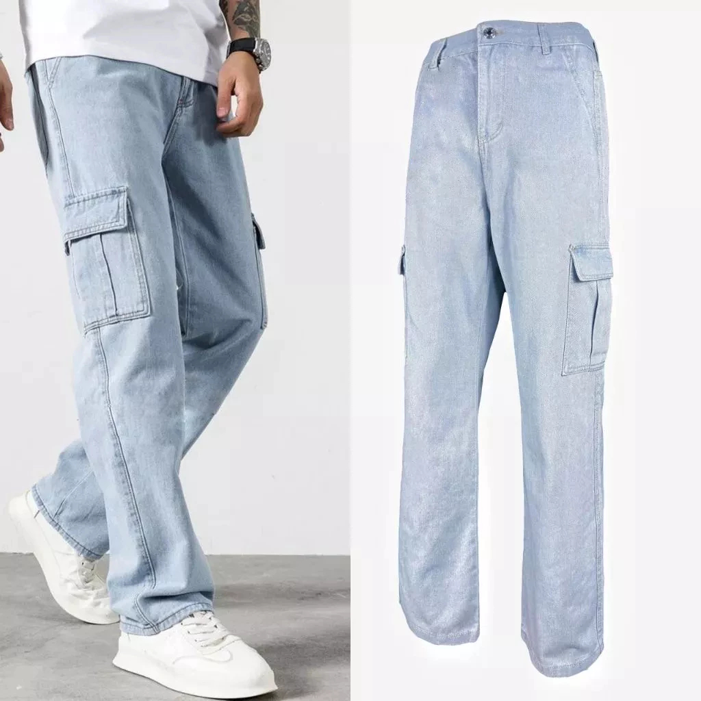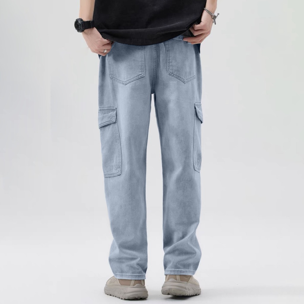 กางเกงคาร์โก้สําหรับผู้ชายเกาหลีถุงกางเกงยีนส์ตรง2025กางเกงคาร์โก้ใหม่กางเกงลําลองขากว้างตรง