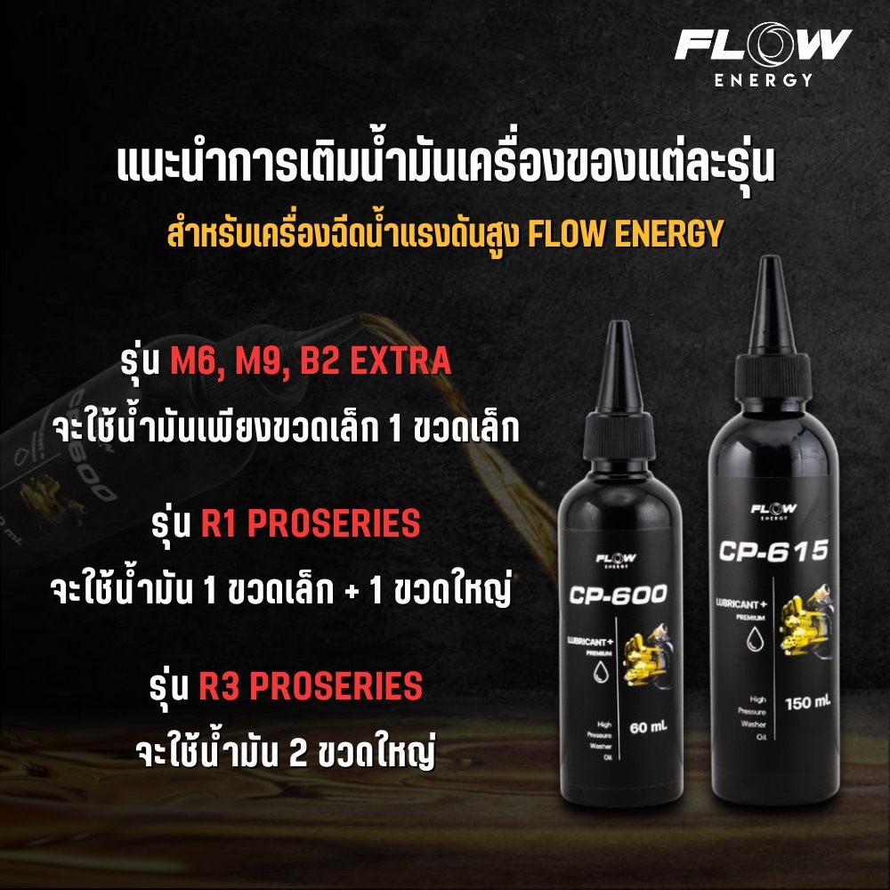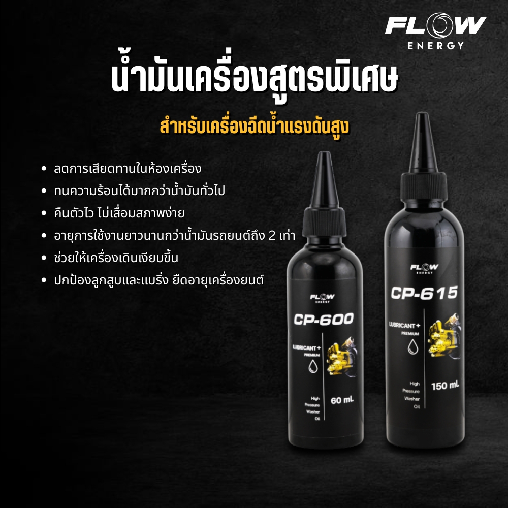 FLOW ENERGY น้ำมันเครื่อง น้ำมันสำหรับเครื่องฉีดน้ำแรงดันสูง 60ml / 150ml ( รุ่น CP600 / CP615 )