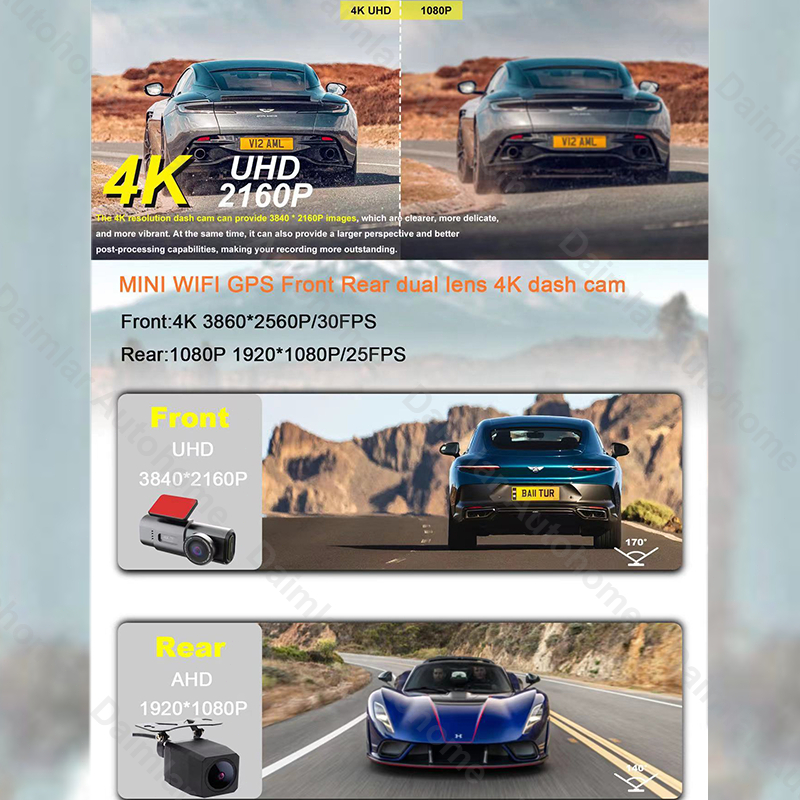 ชัด4K! กล้องติดรถยนต์ หน้าหลัง GPS 170°การเชื่อมต่อ กล้องหน้ารถ APP WiFi โหมดกลางคืน การดูแบบเรียลไทม์ จอกว้าง 2.0 นิ้ว