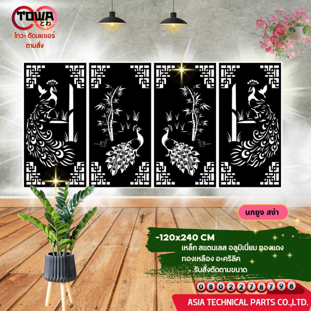 โทวะ เหล็กฉลุ เหล็กฉลุลาย นกยูง หงษ์ แผ่น ตกแต่งรั้ว ผนัง บังตา บิวด์อินด์ ประดับตกแต่ง สวน บ้าน