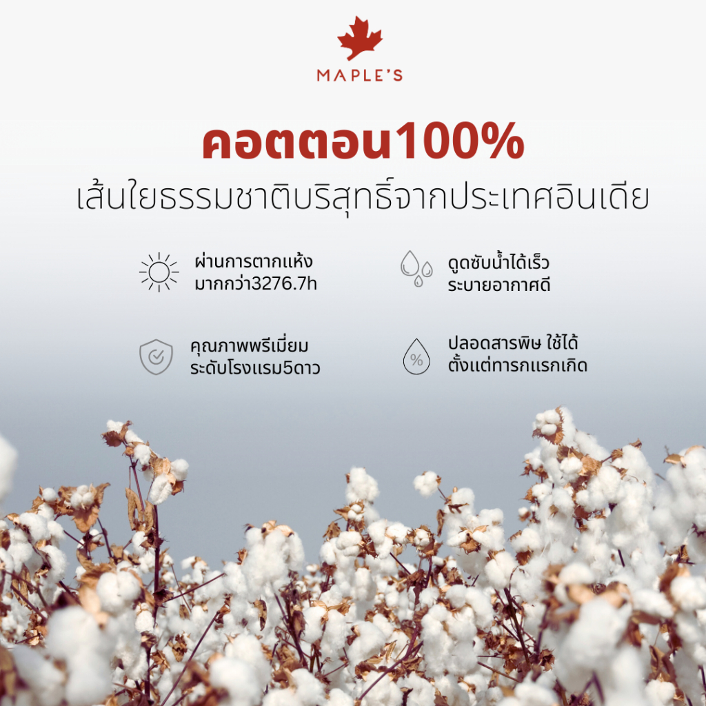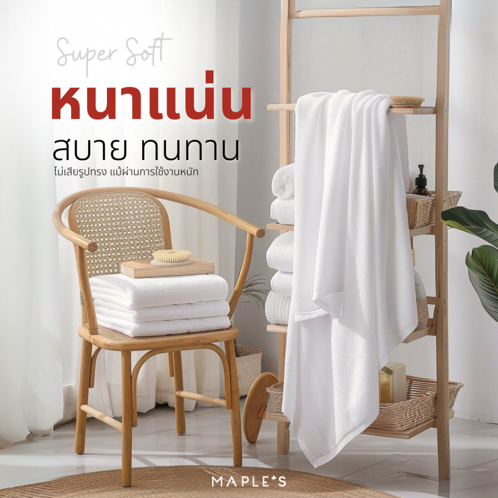 MAPLE'S Organic-Cotton Collection ผ้าขนหนูเกรดโรงแรม 5ดาว 15x30 27x54 หนาแน่น ด้ายคู่ คอตตอน towel