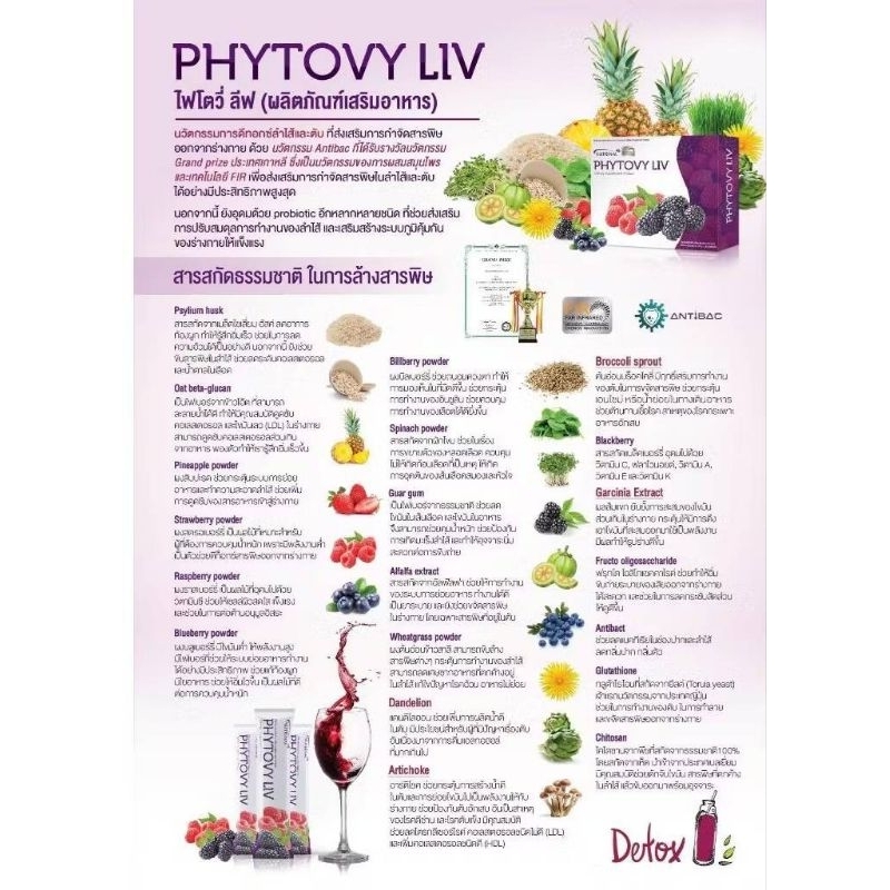 Phytovy liv detoxไฟโตวี่ลิฟแท้#ไม่กรีดกล่อง#ช่วยล้างสารพิษให้กับตับและลำไส้ (1 กล่อง 15 ซอง) ของแท้ 100%