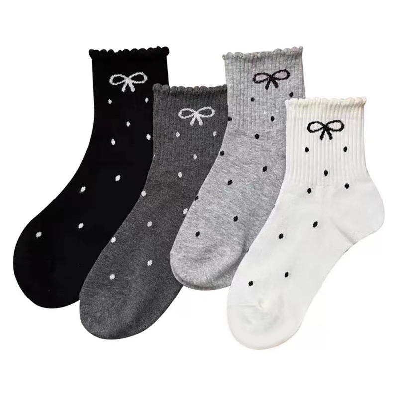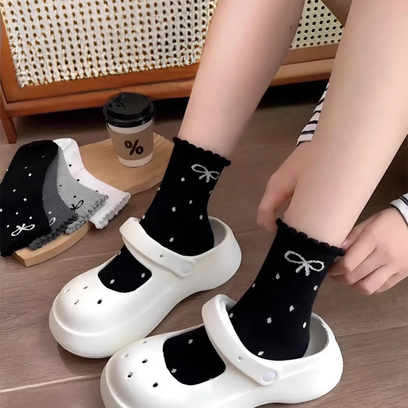 Polka Dot ลูกไม้โบว์ฤดูใบไม้ร่วงฤดูหนาวสไตล์ใหม่ถุงเท้ากองนักเรียน ins อินเทรนด์หลอดยาวสไตล์ญี่ปุ่น Influencer กลาง Tu