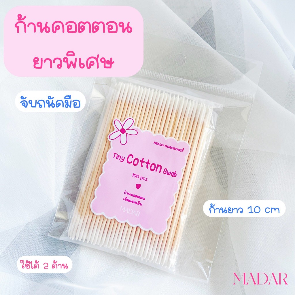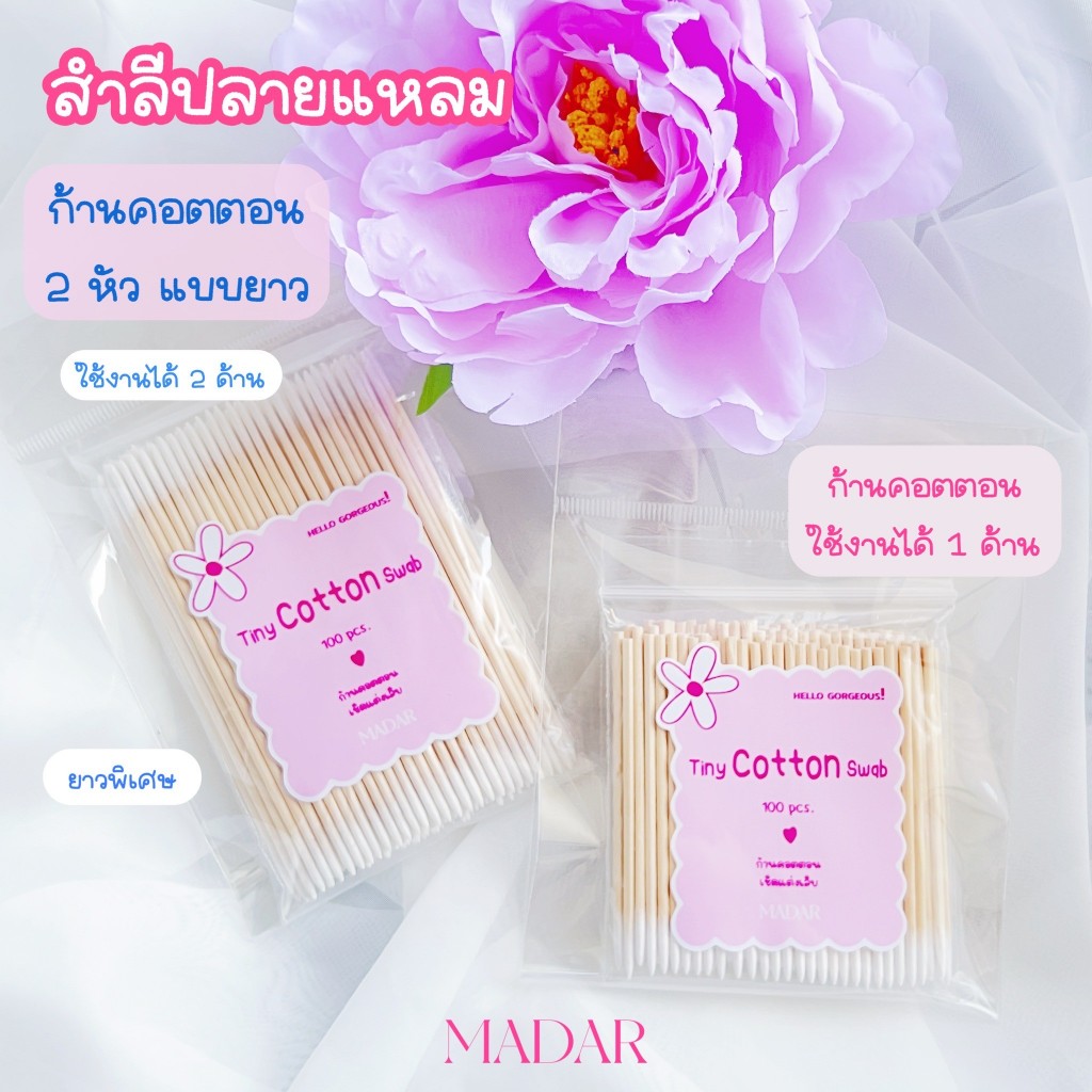 MADAR ก้านคอตตอน เช็ดแต่งเล็บ 100 pcs ใช้ได้ 2 ด้าน สำลีปลายแหลม