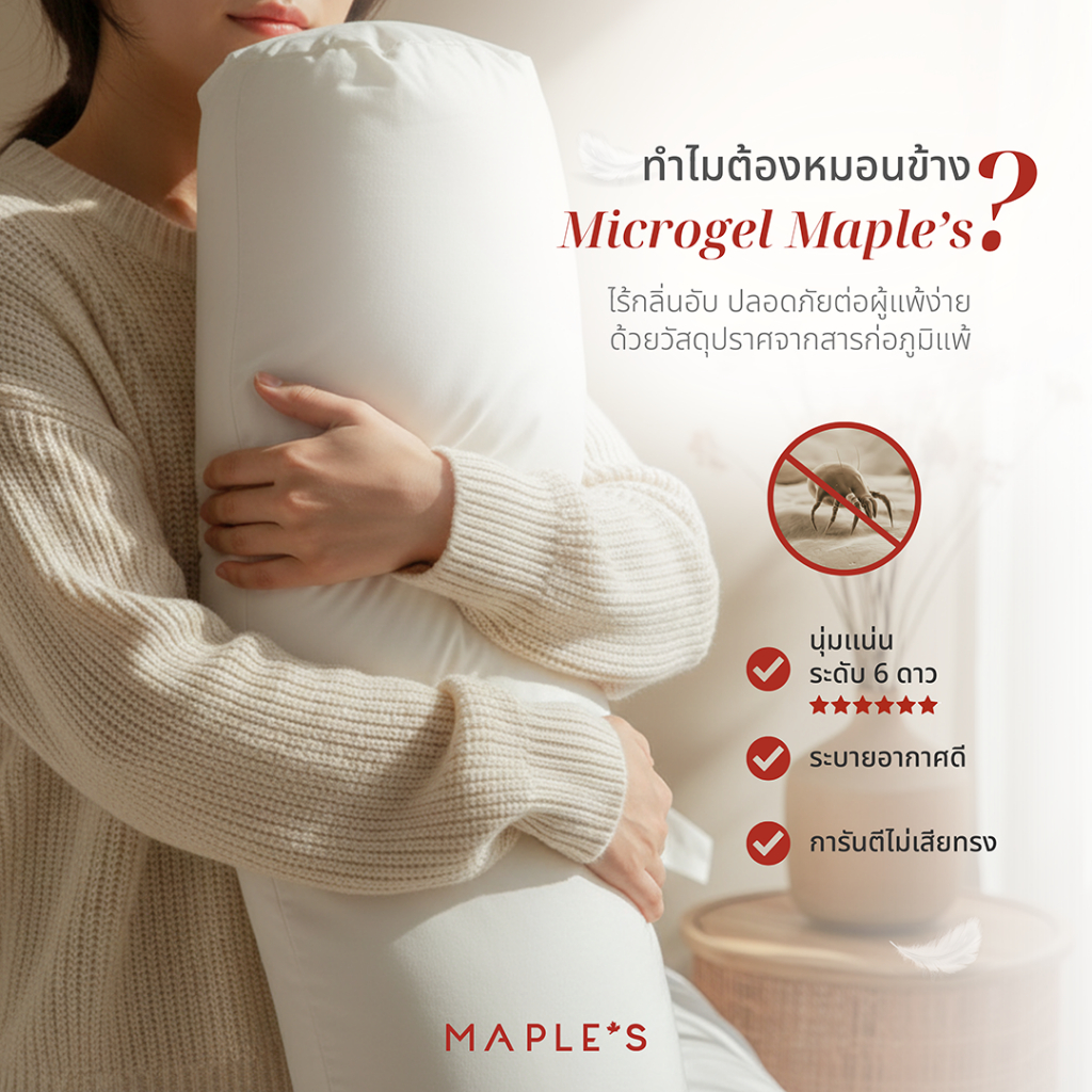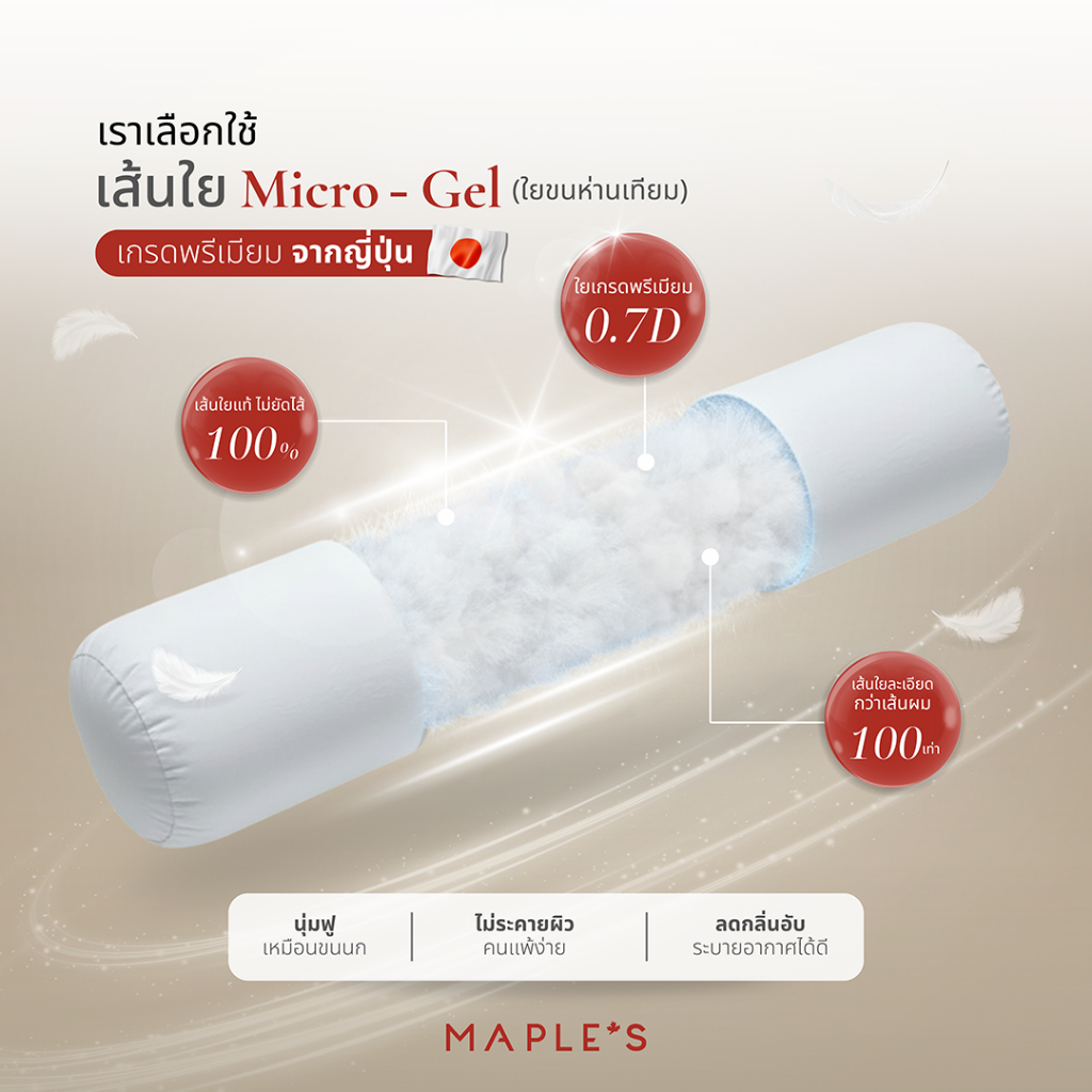MAPLE'S หมอนข้าง ใยขนห่านเทียม Micro-Gel แท้100% หมอนหนุนซิป ขนห่านเทียม กันไรฝุ่น ไมโครเจล bolster