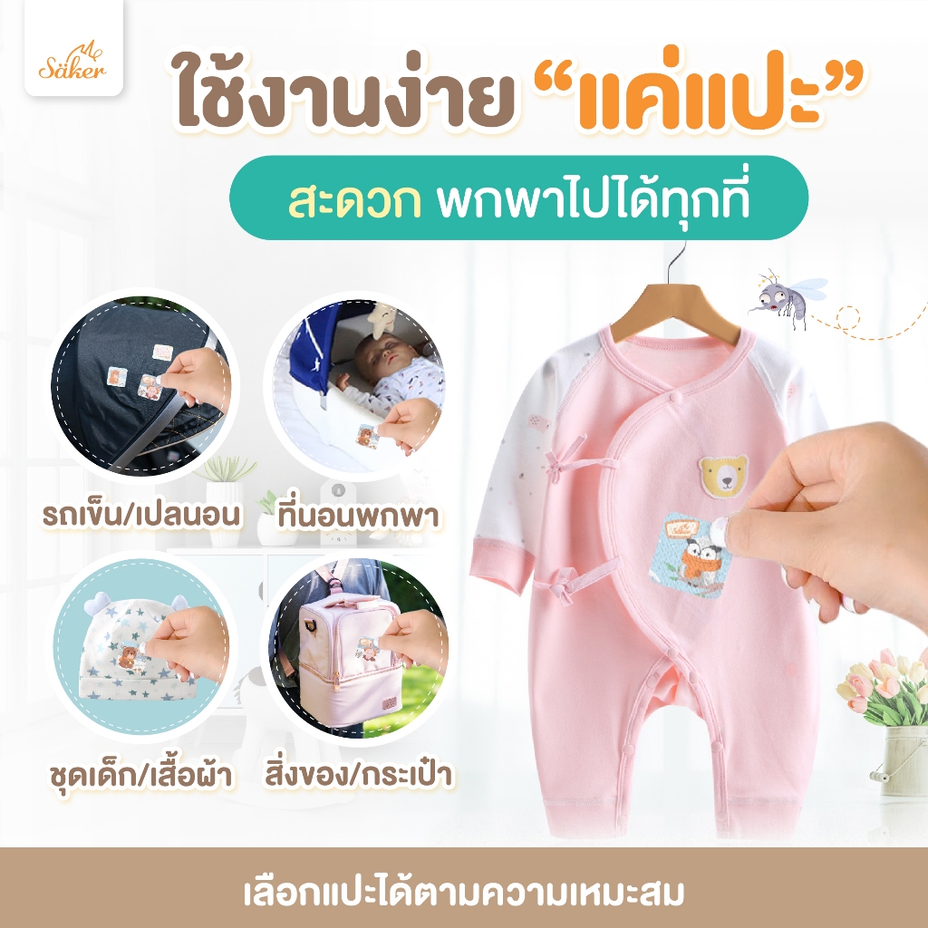 (มีอย.ไทย)Saker แผ่นติดกันยุง 3แถม1จากสารสกัดจากธรรมชาติ สำหรับเด็กทารก&ทุกวัยปลอดภัยต่อเด็กแรกเกิด