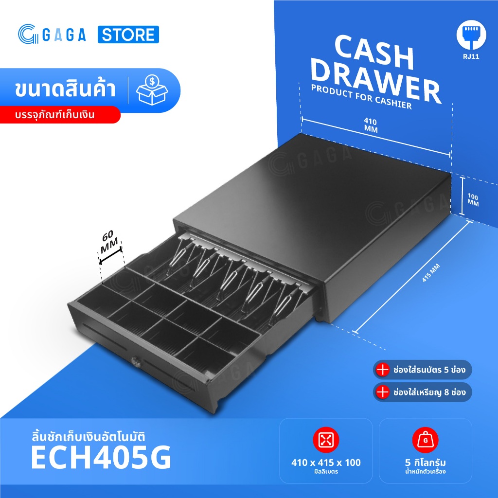 GAGA ลิ้นชักเก็บเงินอัตโนมัติ POS Cash Drawer สำหรับแคชเชียร์ ร้านสะดวกซื้อ ปิดล็อคแน่น ECH405G
