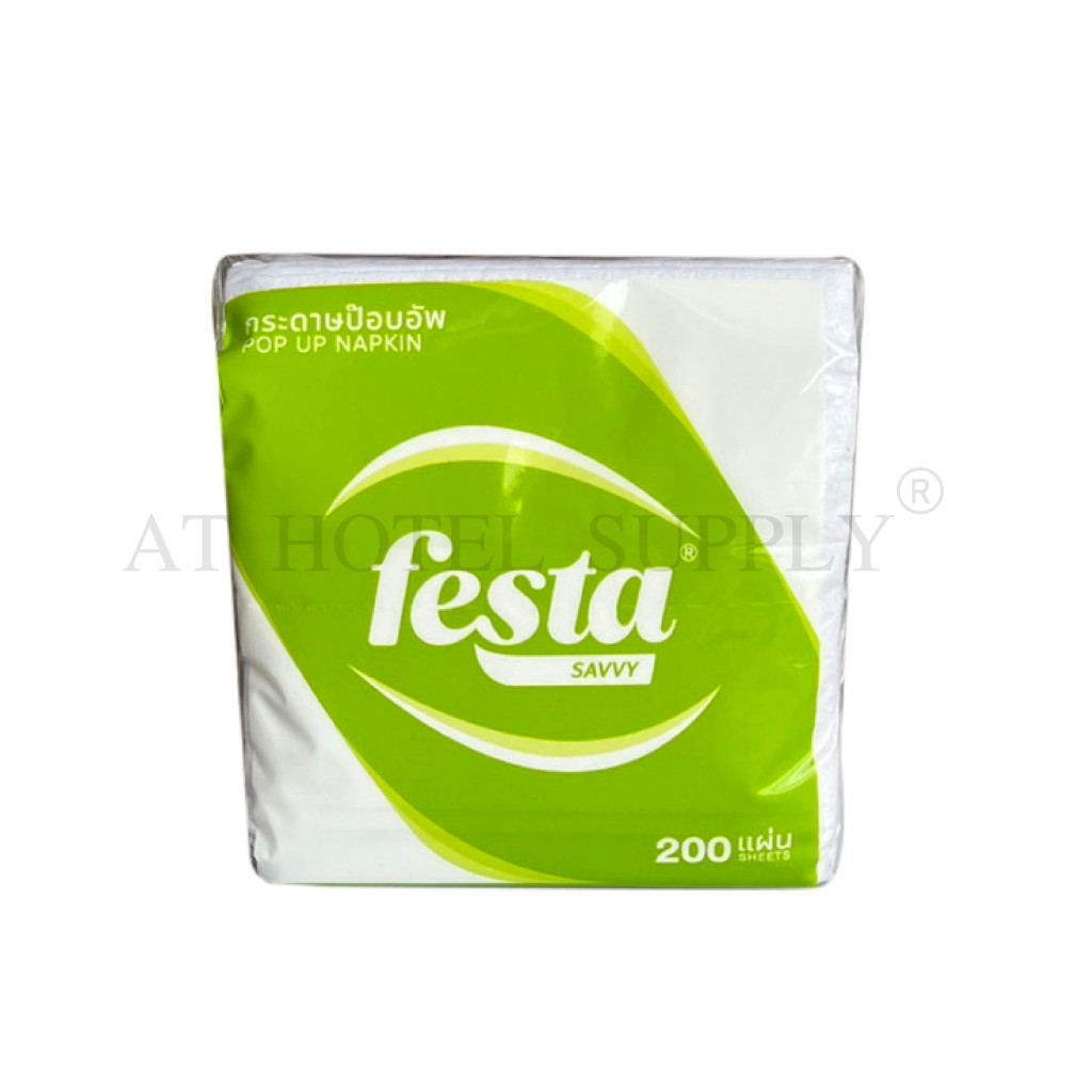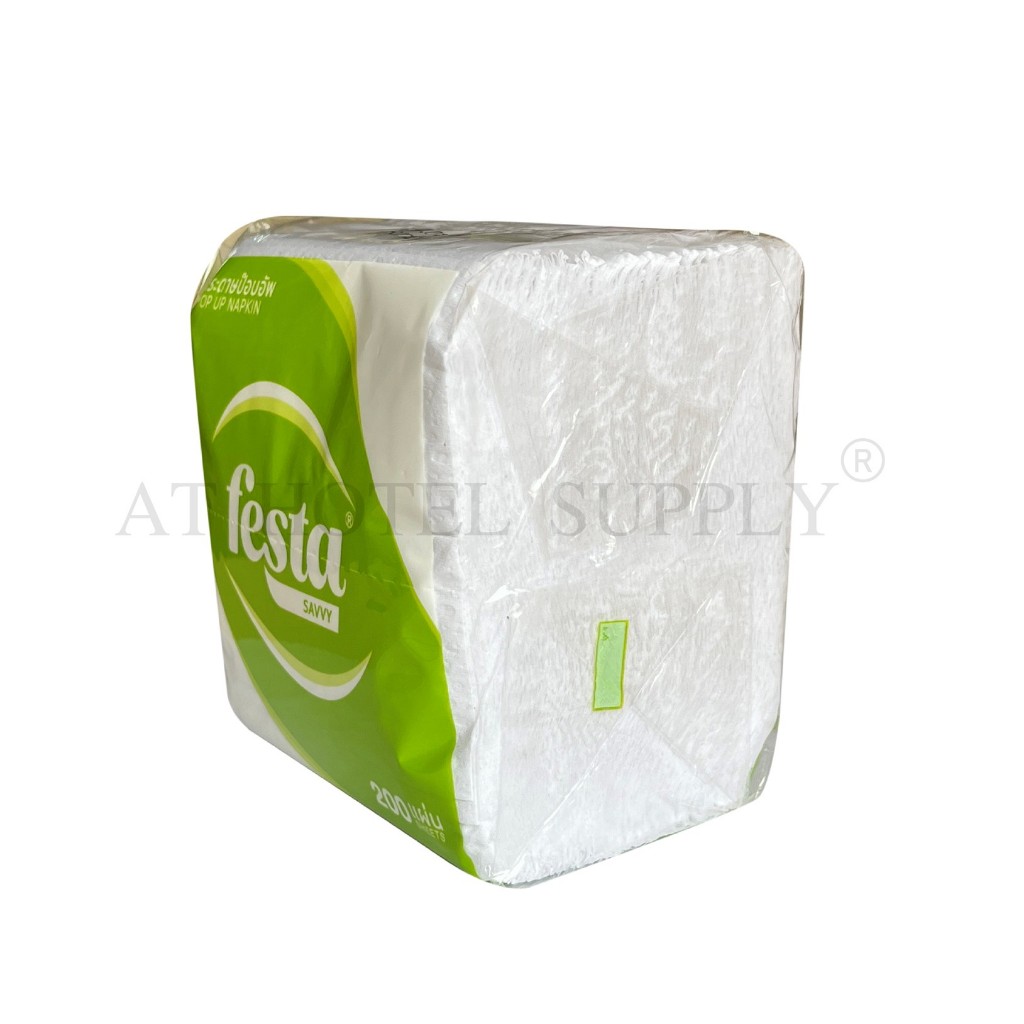 Festa กระดาษเช็ดปากป๊อปอัพ Pop Up Napkin หนา 1 ชั้น 200 แผ่น หน้า 10 ซม. จำนวน 60 ห่อ, 1 ลัง