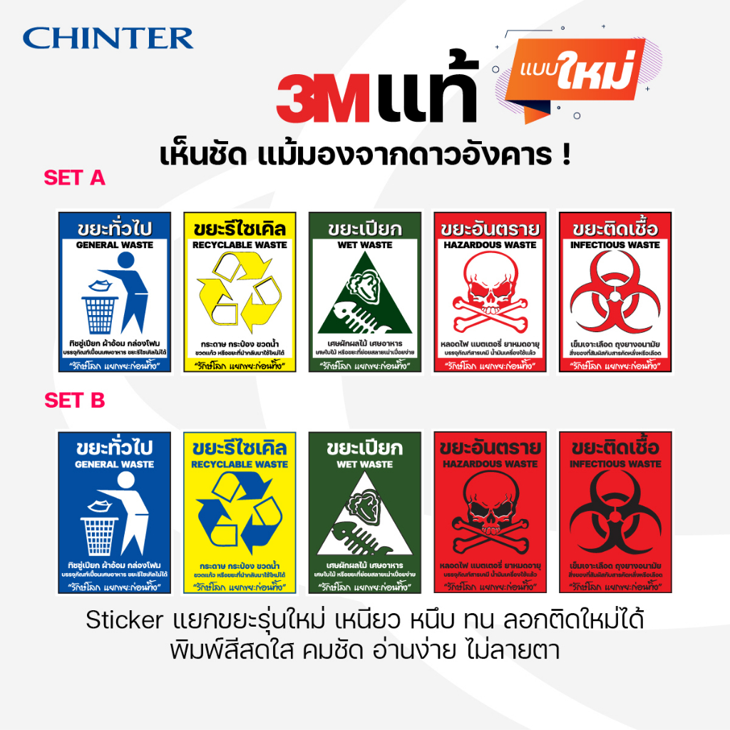 CHINTER สติกเกอร์รักษ์โลก ติดถังขยะ3Mแท้ และPVCกันน้ำ ทนแดดด ขนาดA4,A5 คัดแยกขยะ ติดหน้าถังขยะ14ลิตรถึง240 ลิตร