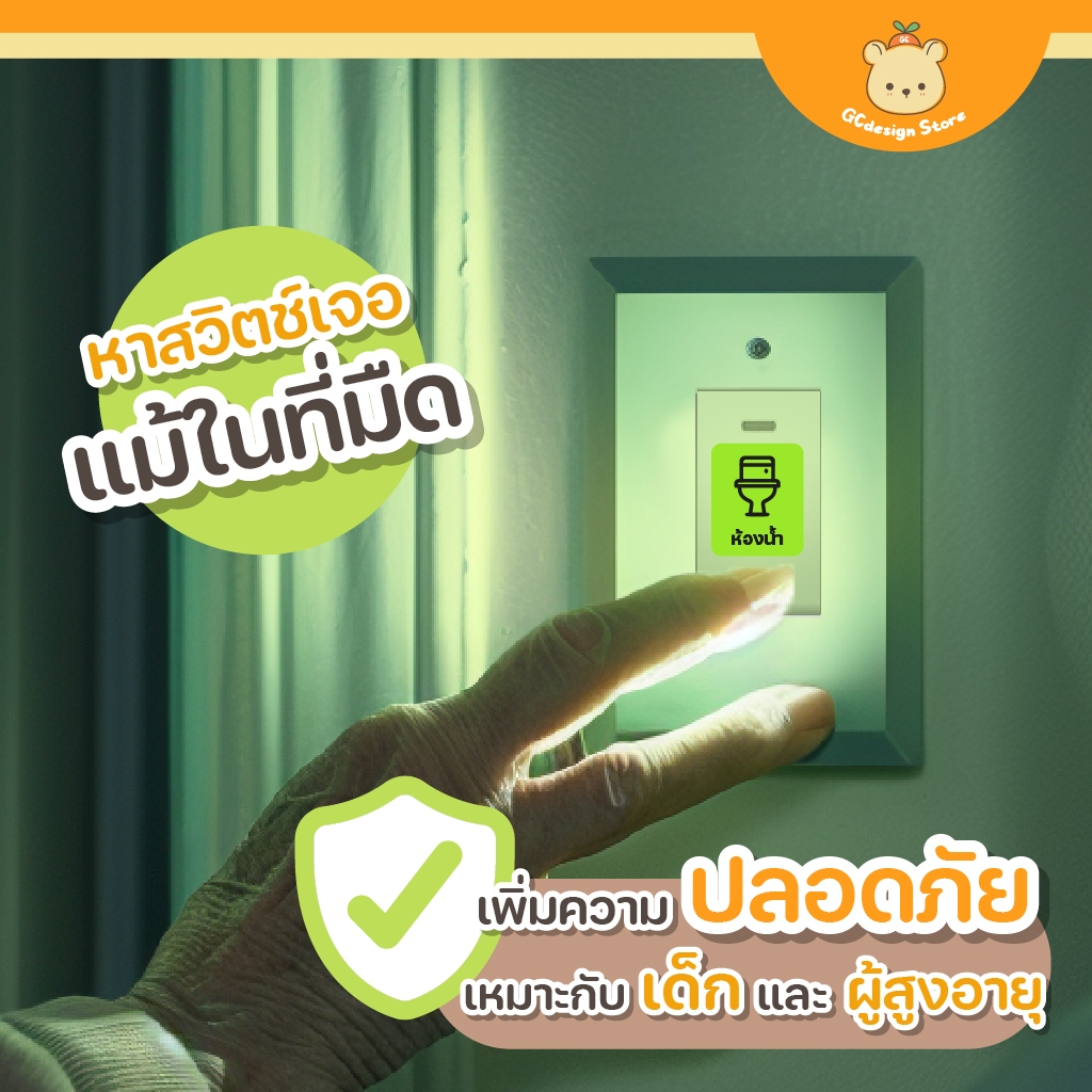 [พร้อมส่ง-ไม่เปลี่ยนคำ] สติ๊กเกอร์ สวิตซ์ไฟ เรืองแสง สวิตซ์ไฟเรืองแสง กันน้ำ ติดทน - S014