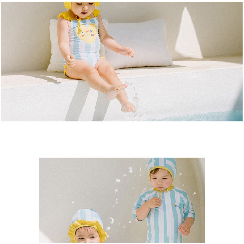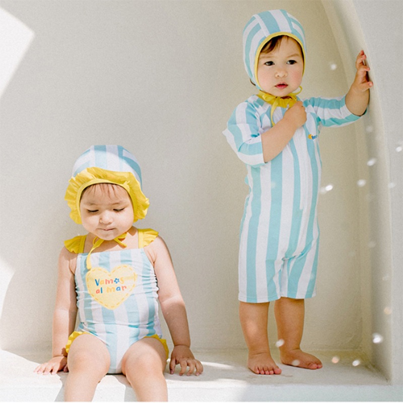 SM-083 🎯ส่งด่วนกรุงเทพ📦 ชุดว่ายน้ําเด็กทารกชุด Twins ชายหญิงแฟชั่น ชุดว่ายน้ํา + หมวก Swim ผ้าแห้งไว