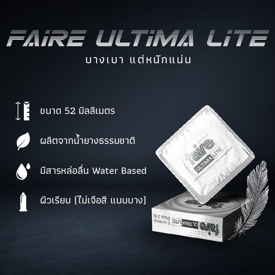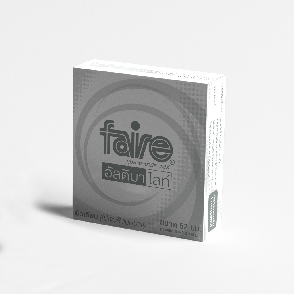 [12 กล่องแถม 12] แฟร์ อัลติมา ไลท์ ถุงยางอนามัย ผิวเรียบ 52 มม รวม 72 ชิ้น Faire Ultima lite Condom