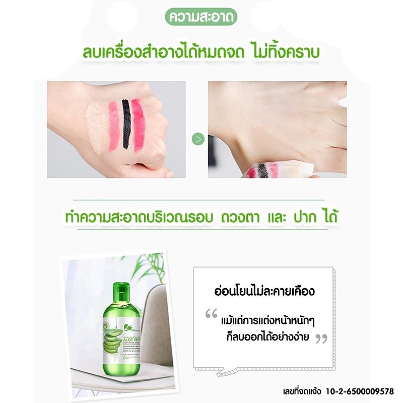 Missnala คลีนซิ่งว่านหางจระเข้ ALOE MAKEUP REMOVER น้ำยาเช็ดเครื่องสำอาง สูตรอ่อนโยน 250ml