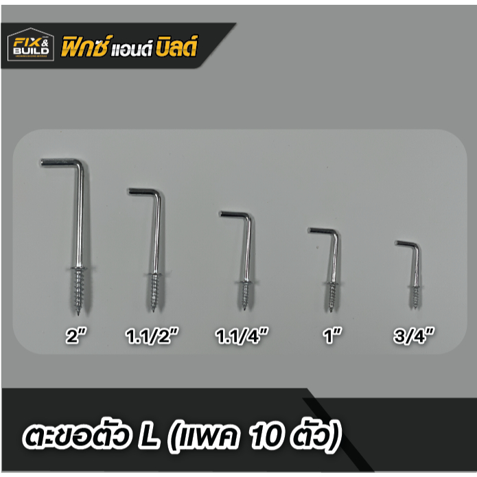 ตะขอตัวแอล L (แพค 10 ตัว) ตะขอเกลียวปล่อย ตะขอห้อยของ ตะขอแขวน