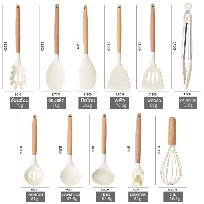 ตะหลิว ชุดเครื่องครัวซิลิโคน ตะหลิวซิลิโคน ทนความร้อน 12ชิ้น ขายแยกชิ้น กระบวย ตะกร้อตีไข่ พิเศษสำหรับทำอาหา