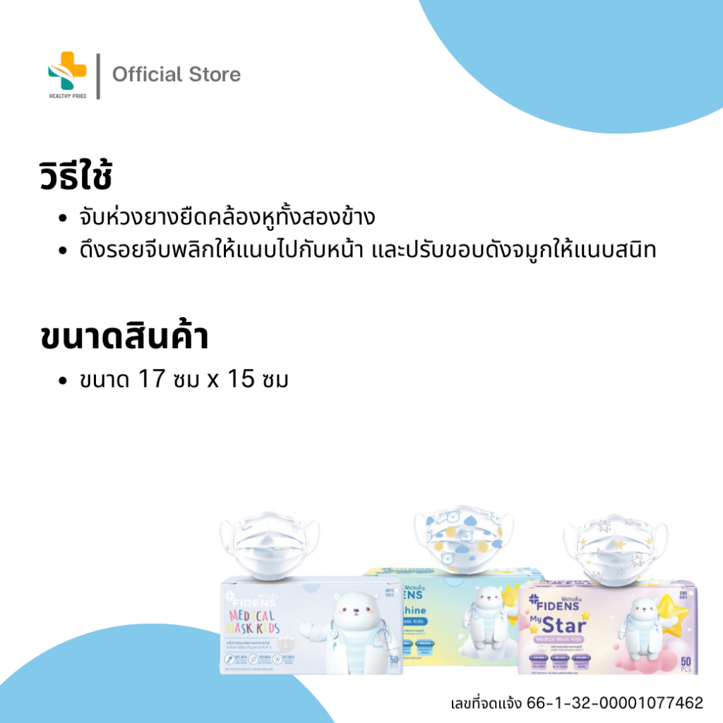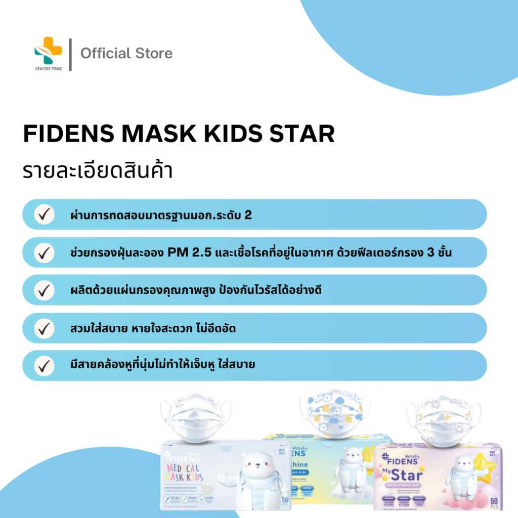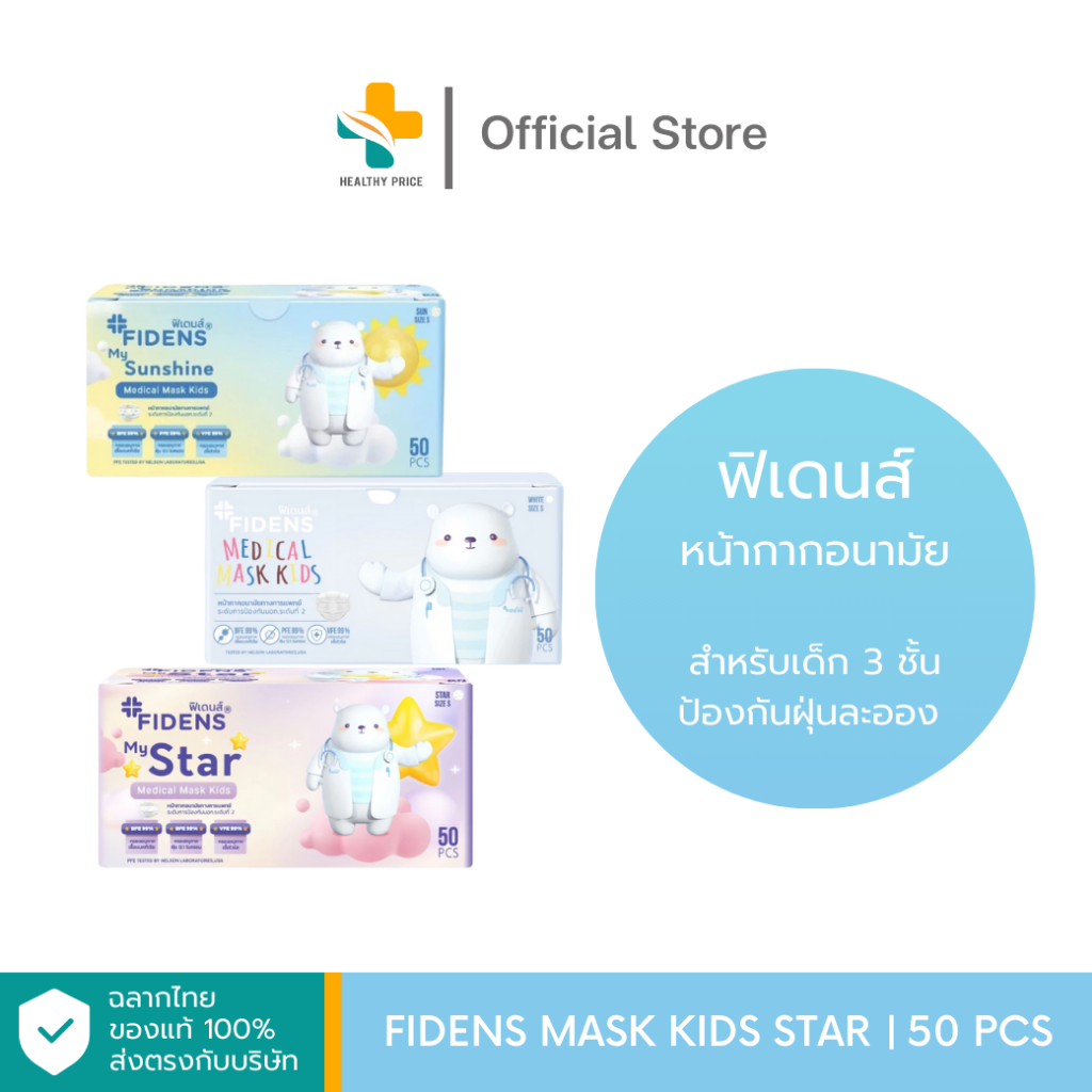Fidens Medical Mask Kids (50 ชิ้น) หน้ากากอนามัยสำหรับเด็ก 3 ชั้น