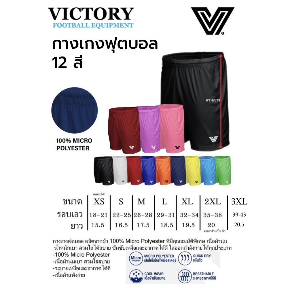 กางเกงบอล Victory 12 สี / 7 ไซส์ soft and breathable polyester fabric คุณภาพที่มืออาชีพเลือกใช้